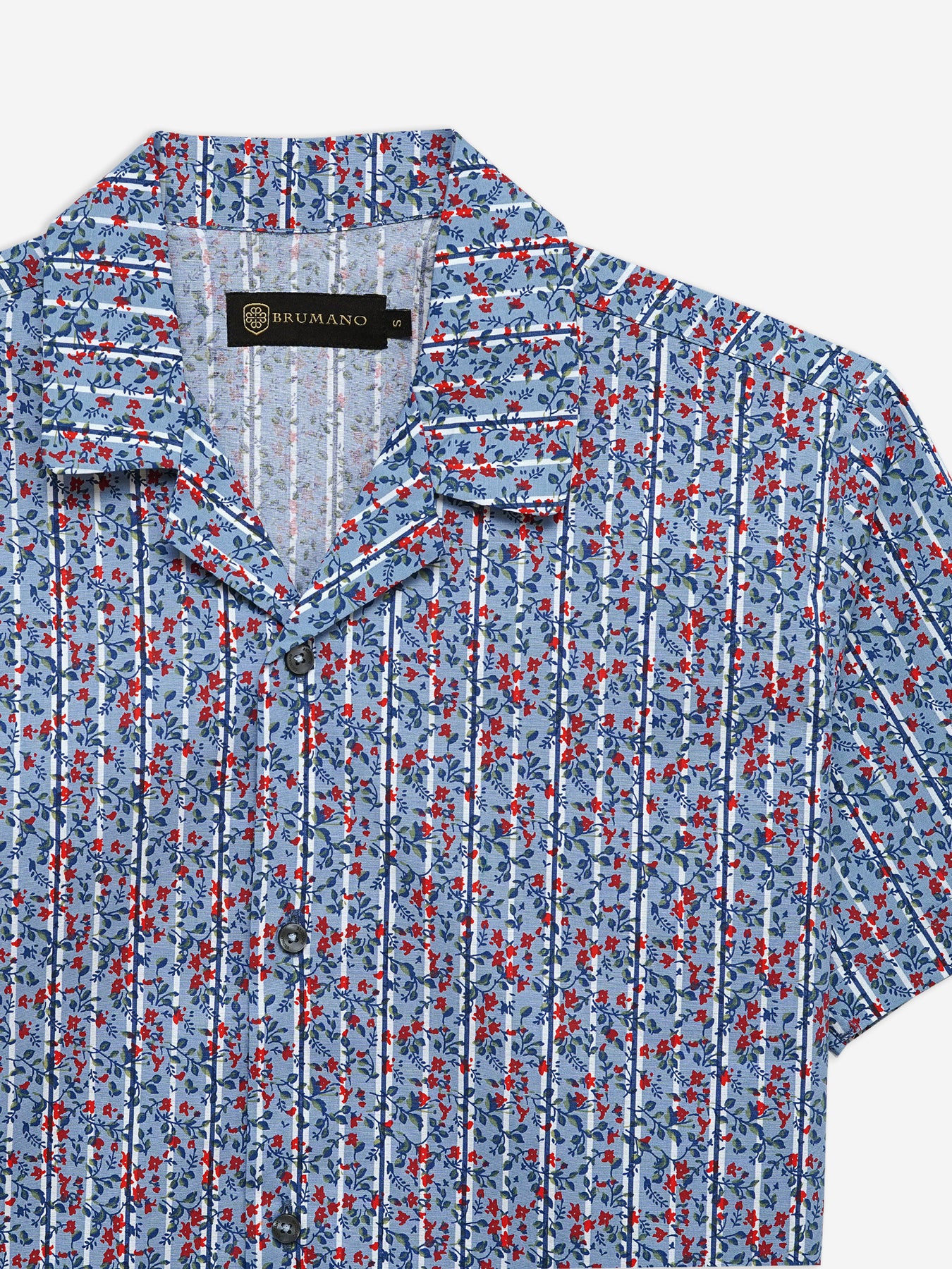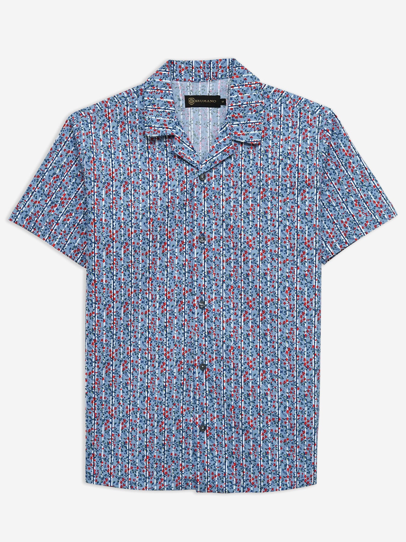 Blue & Red Printed Half Sleeve Cuban Collar Shirt Brumano Pakistan