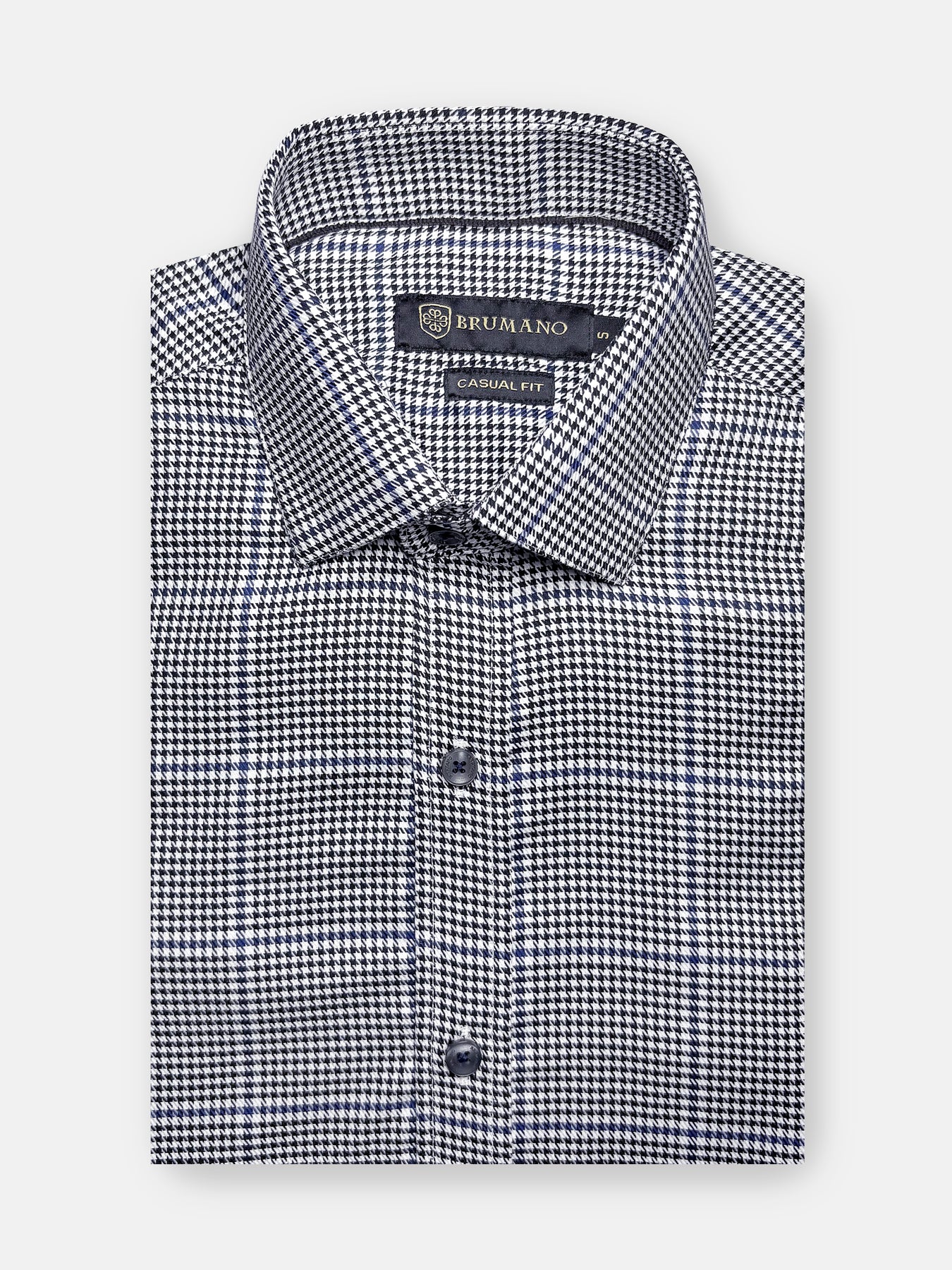 Stay sharp and cool in this sky blue houndstooth patterned linen shirt. Crafted from breathable linen, it features a classic houndstooth design in refreshing blue tones. Finished with button down collar & front inner placket detailing. Perfect for effortless style in warmer weather.Β