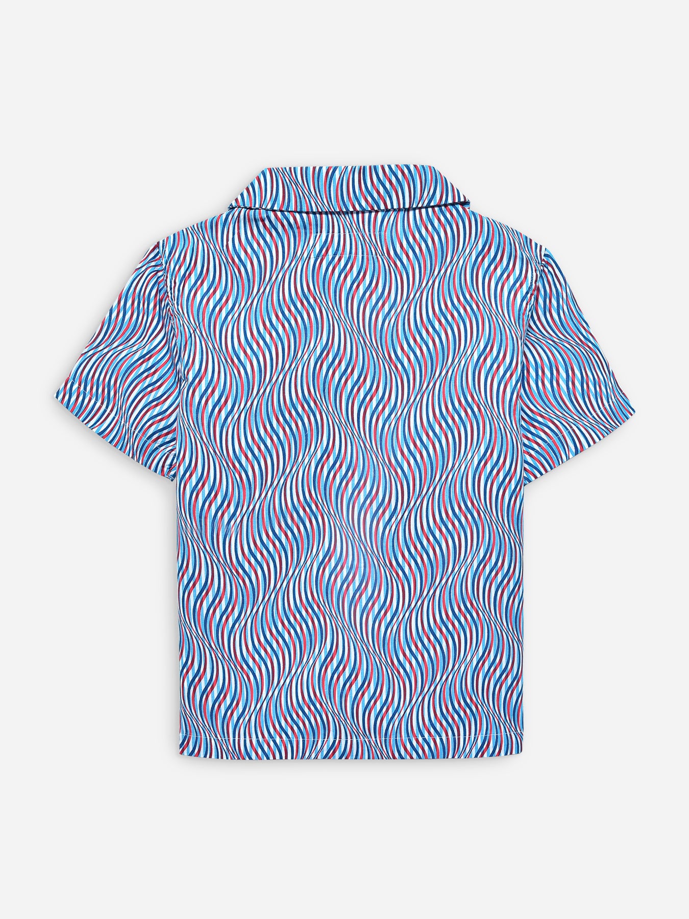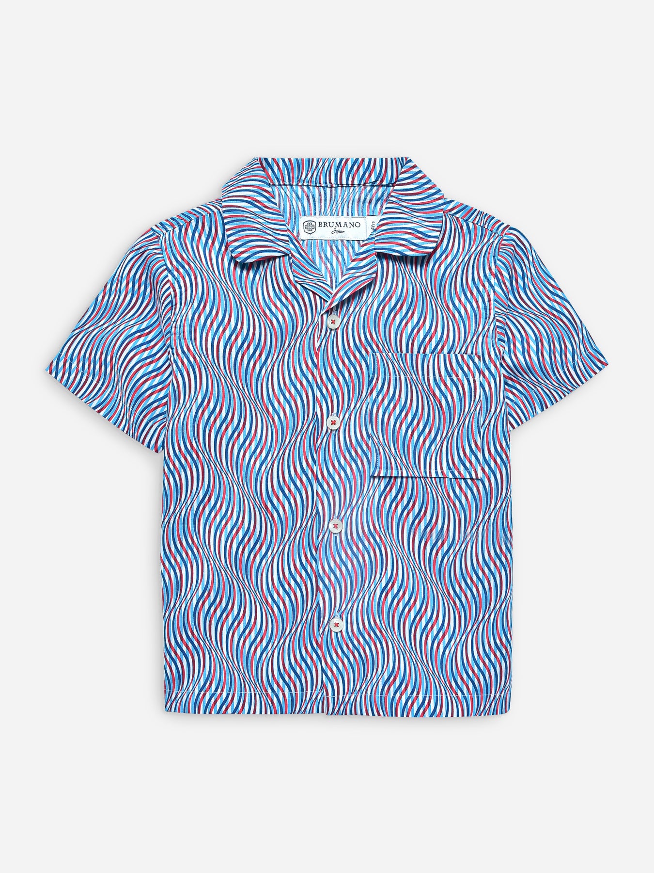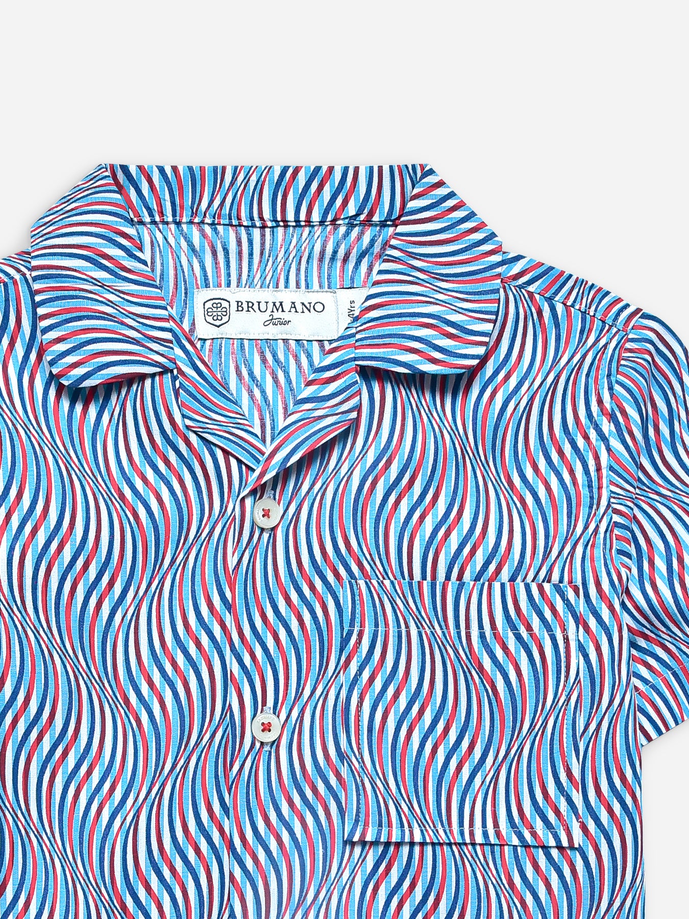 Let your child stand out in style with our kids' half sleeve striped shirt, featuring a cuban collar and vibrant blue, white & red stripes that's perfect for summer days.