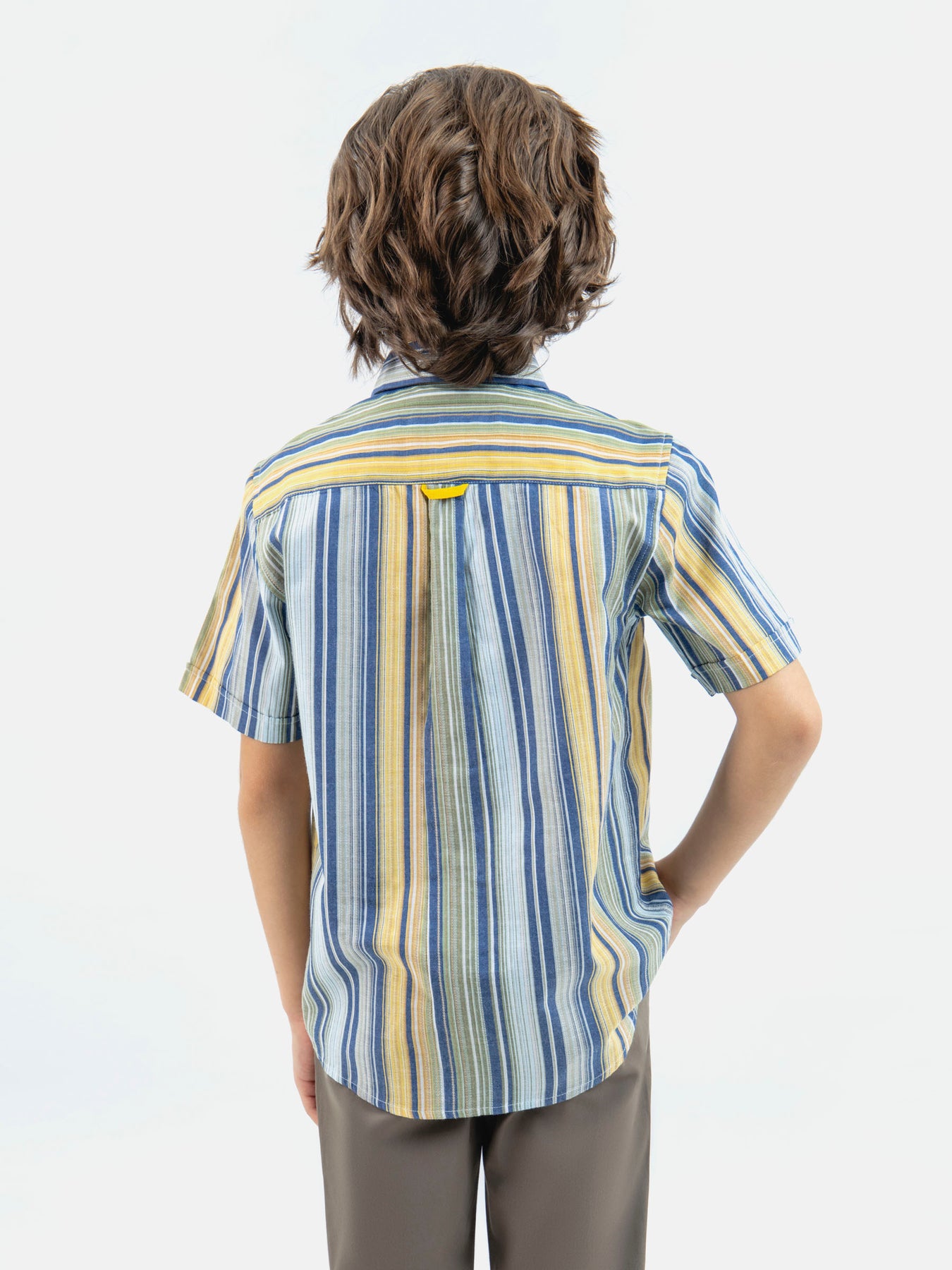 Yellow & Blue Striped Half Sleeve Casual Shirt