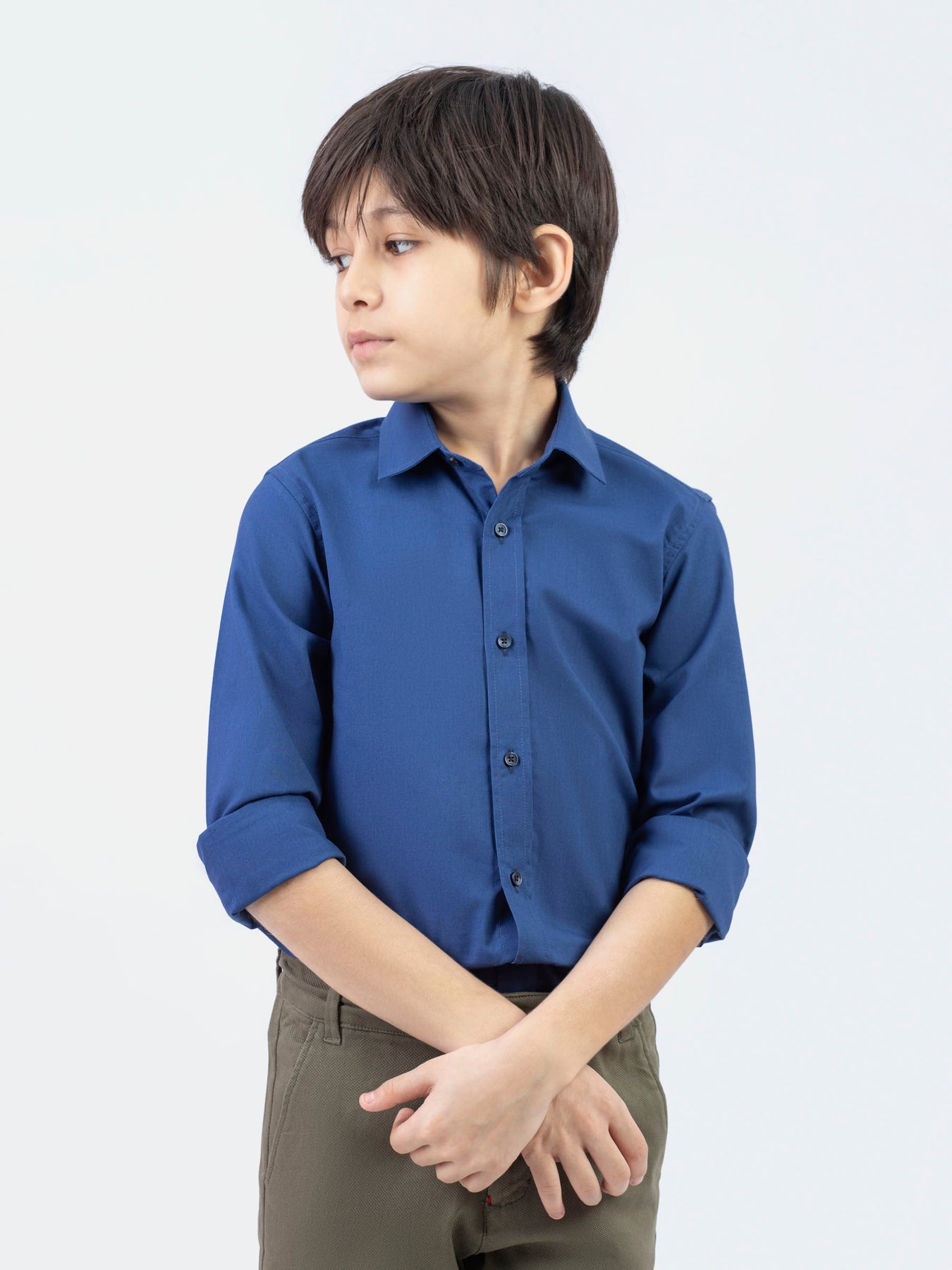 Basic Blue Casual Shirt With Shallow Collar