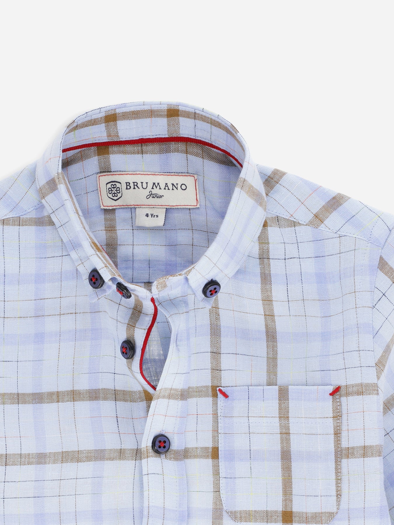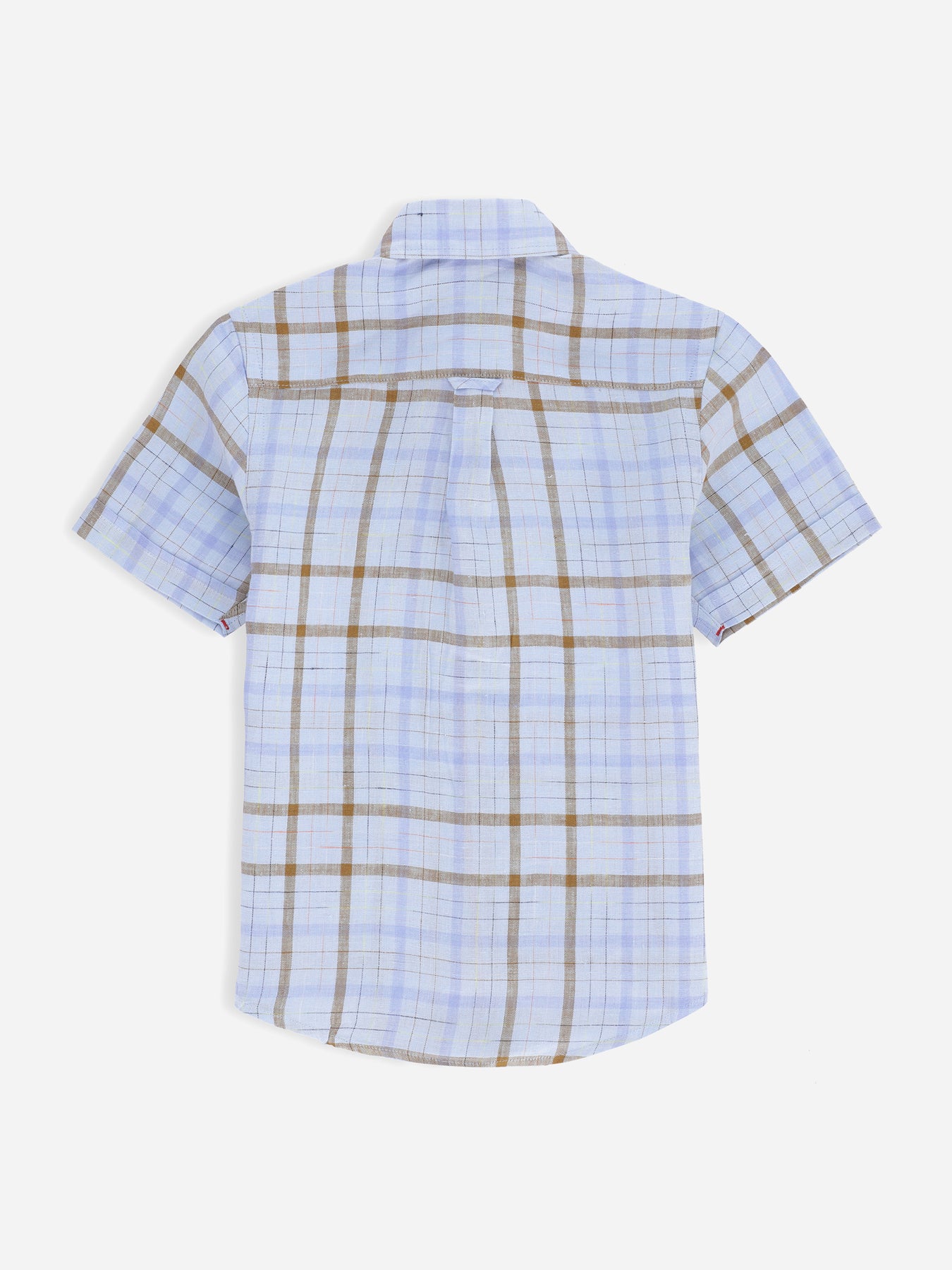 Blue & Brown Cotton/Linen Casual Half Sleeve Shirt