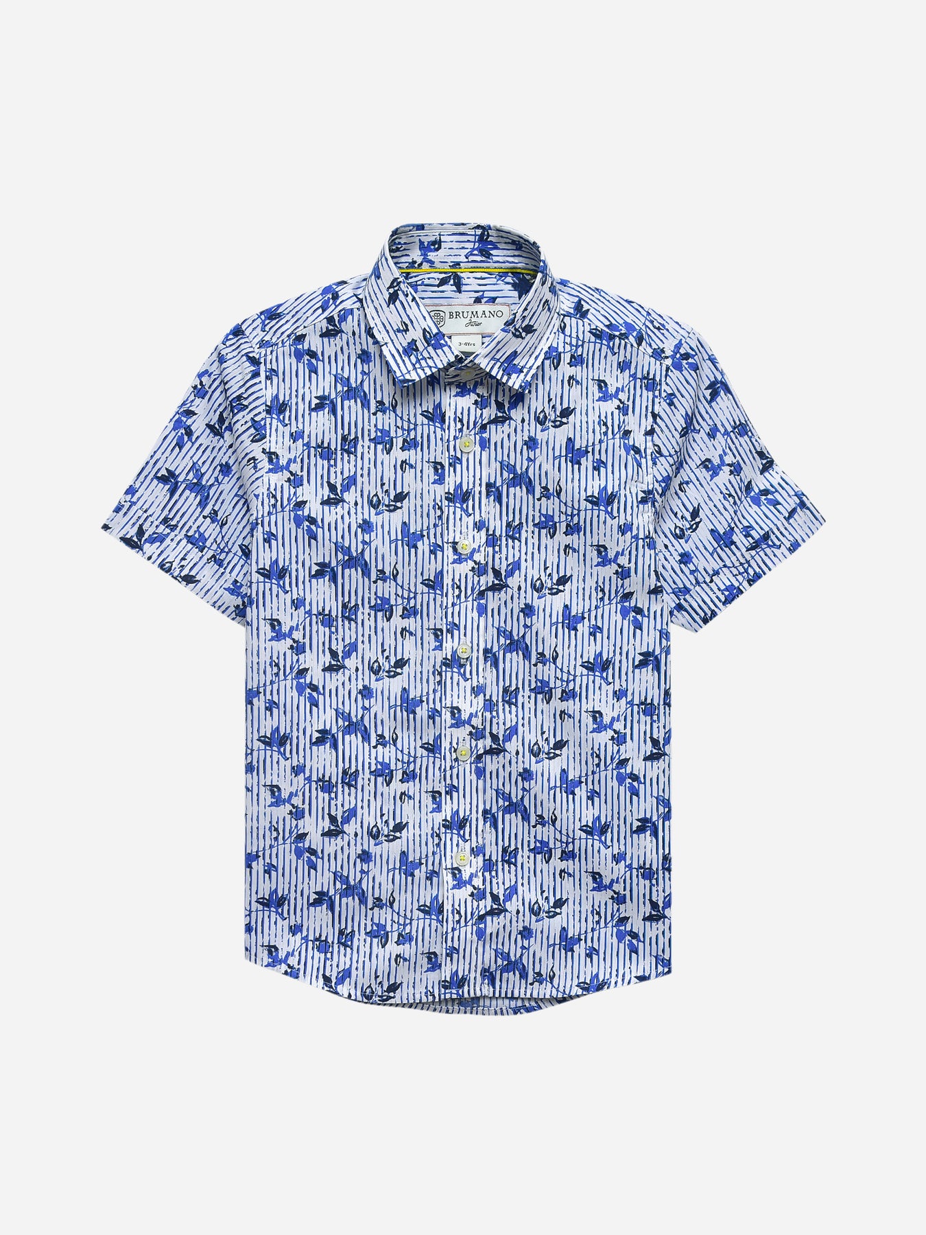 Vibrant blue & white printed shirt from Junior collection is a must-have. Made with 100% cotton, it features lively floral & striped print pattern. Comfortable half sleeves allow for easy movement during playtime adventures. Whether it's a day at school or a family outing, this shirt is sure to keep them looking stylish and feeling great