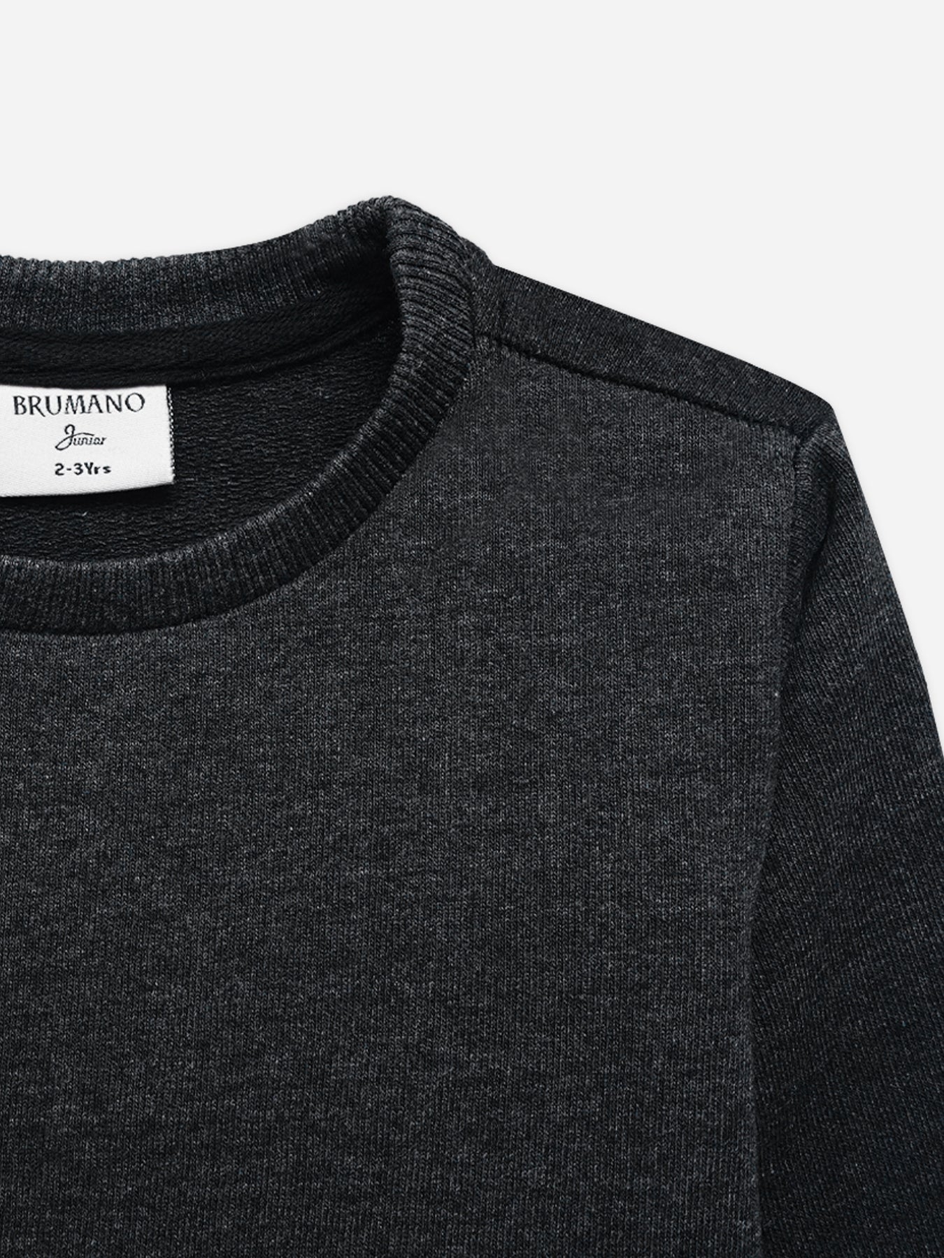 Upgrade your kid's casual wardrobe with our charcoal melange casual sweatshirt. Crafted from soft, breathable fabric, this junior sweatshirt offers all-day comfort and warmth. Perfect for school, play, or weekend outings. A versatile layering essential for every season.