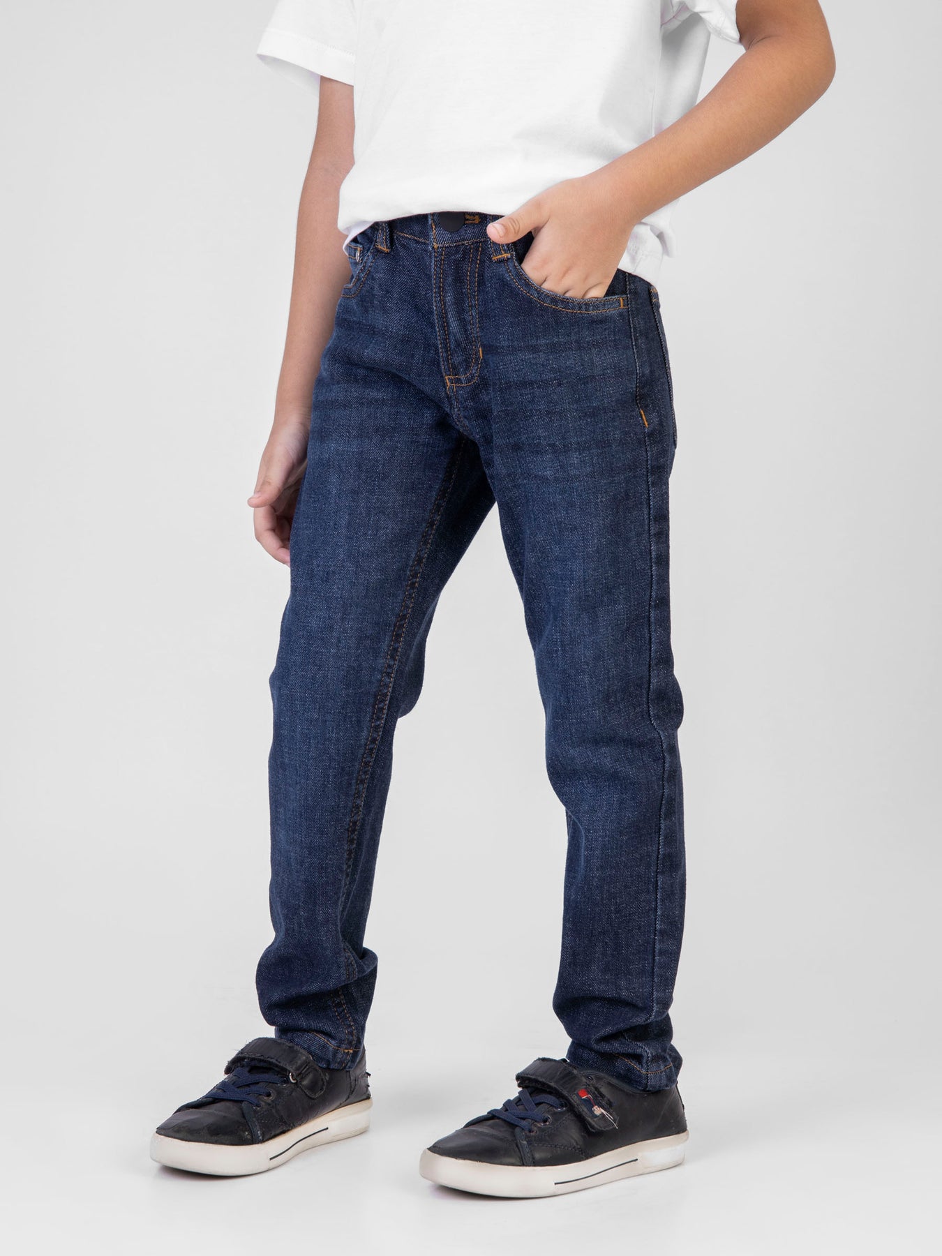 Dark Blue Casual Jeans With Whisker Wash - Junior