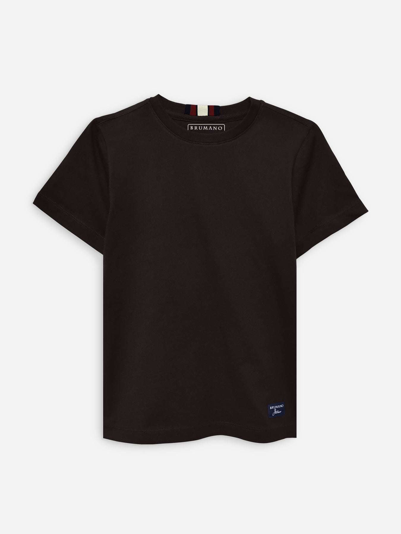 Dark Brown 100% Cotton Casual Tee With Detailing