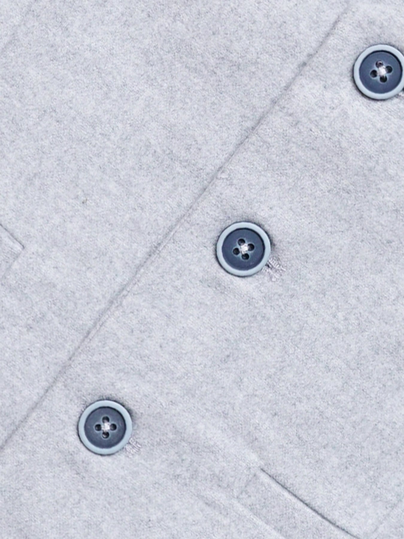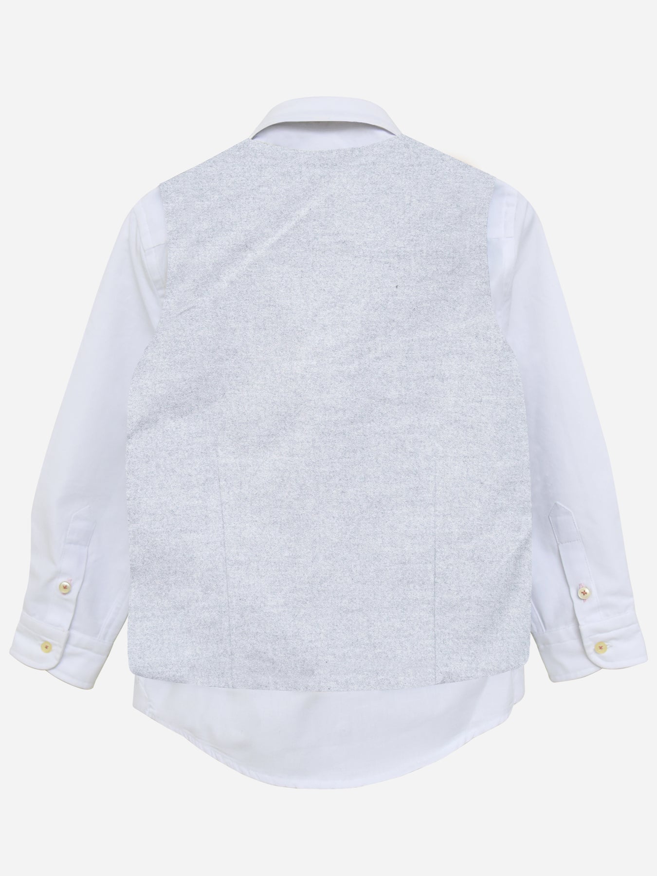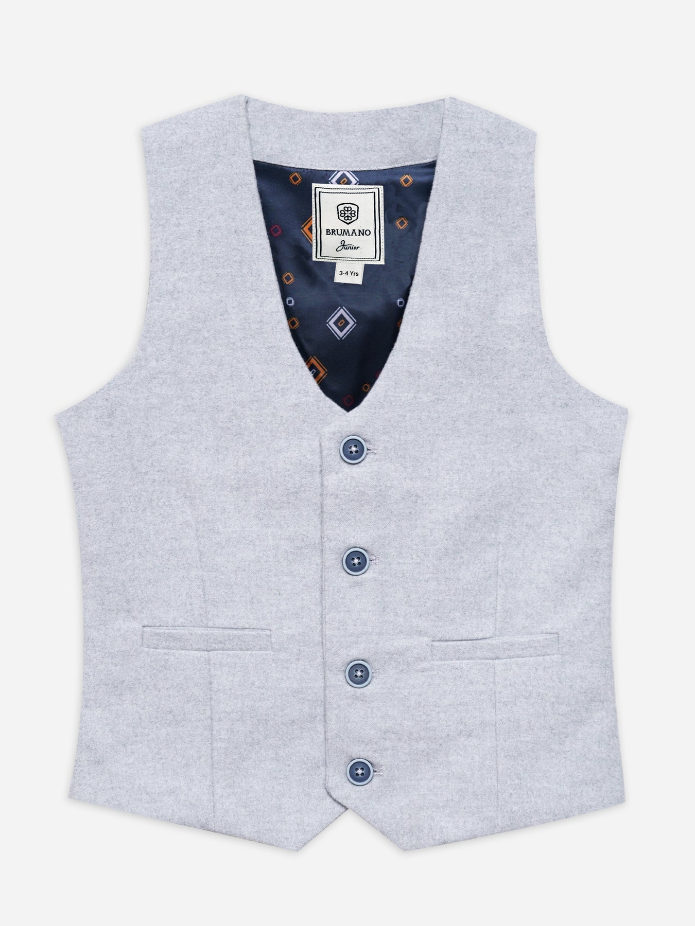A refined heather grey velvet vest designed for young gentlemen. Tailored with a soft, luxurious texture, it brings a touch of elegance to any occasion. Perfect for pairing with crisp shirt and dress trouser