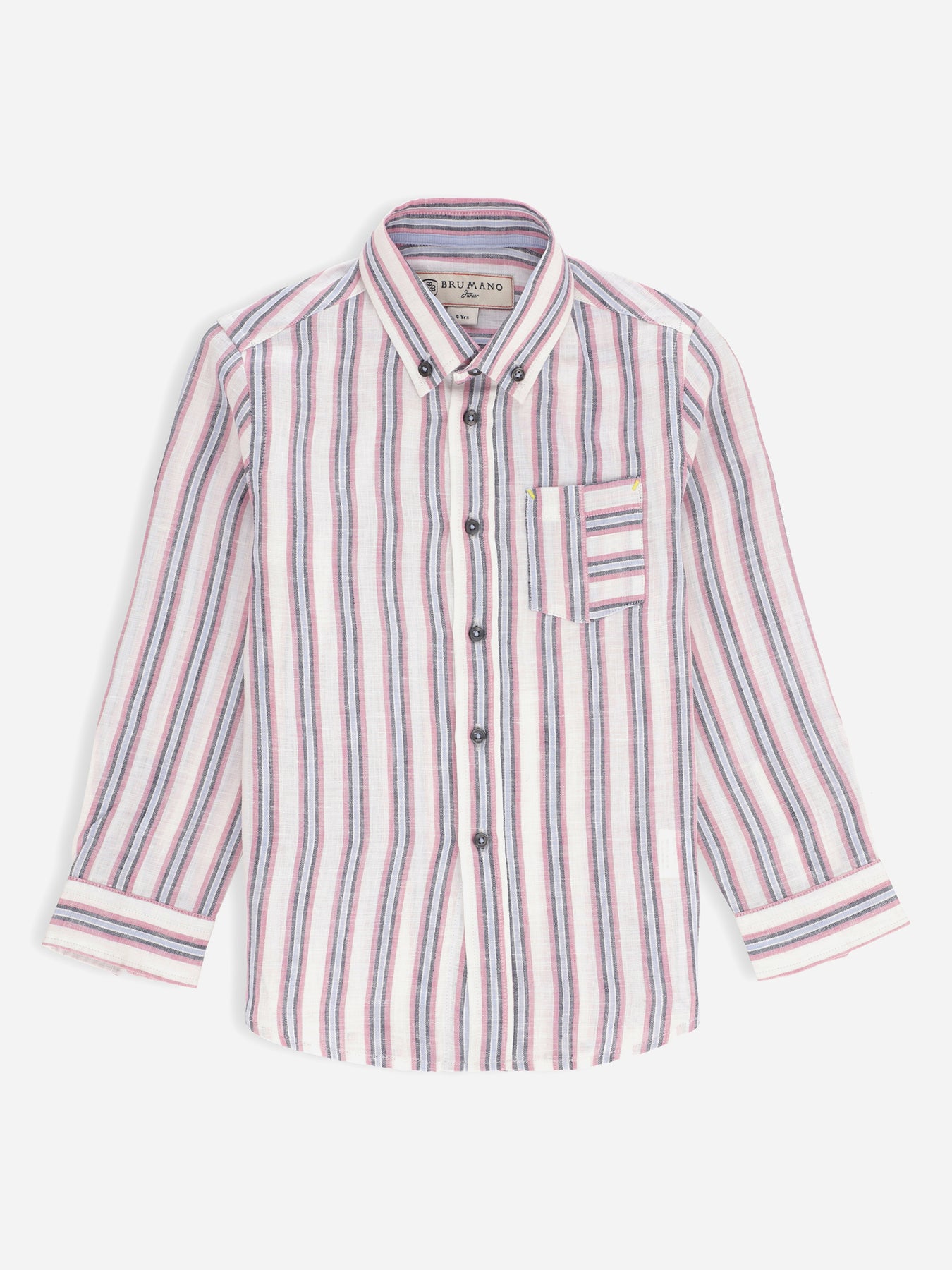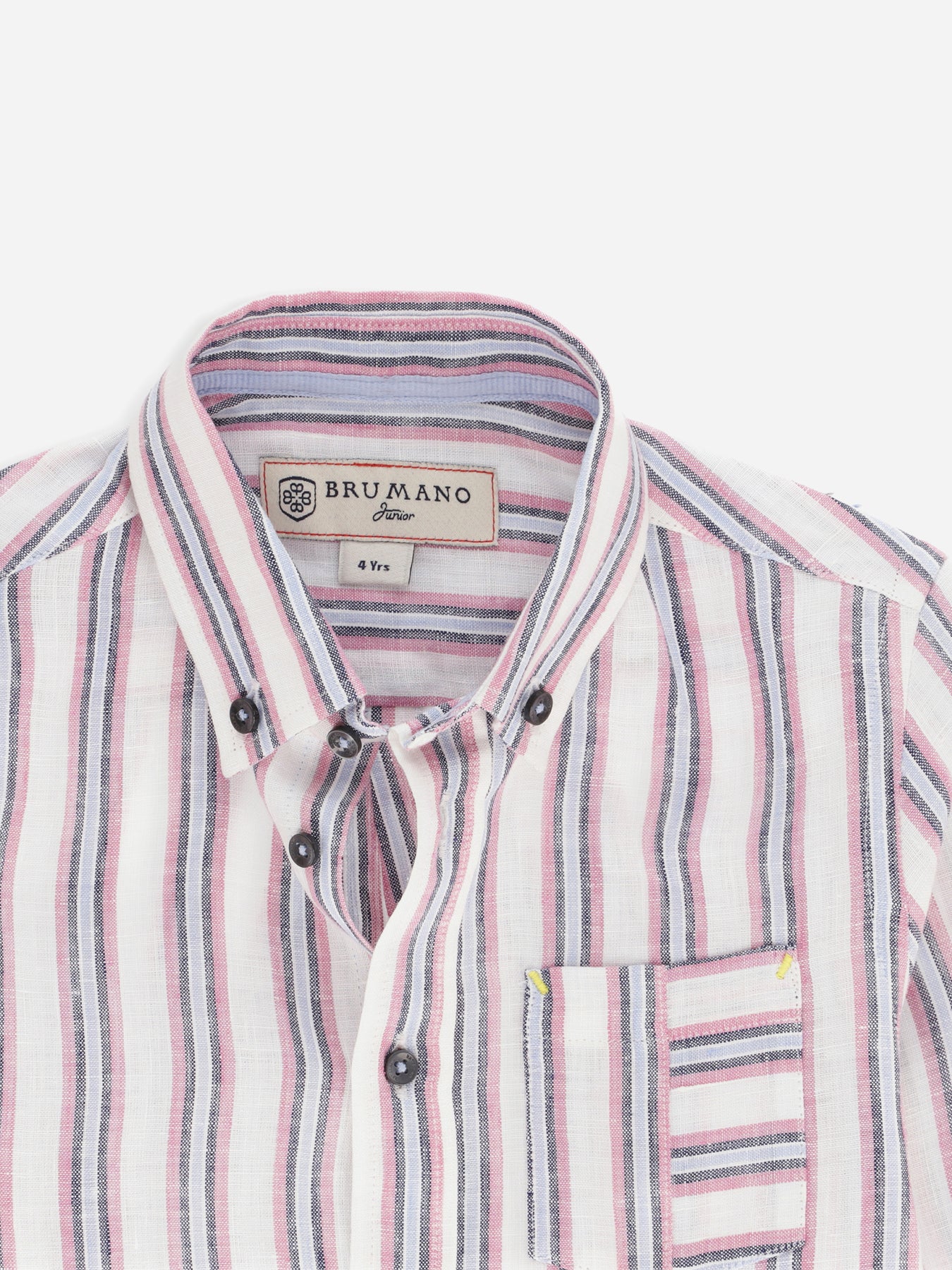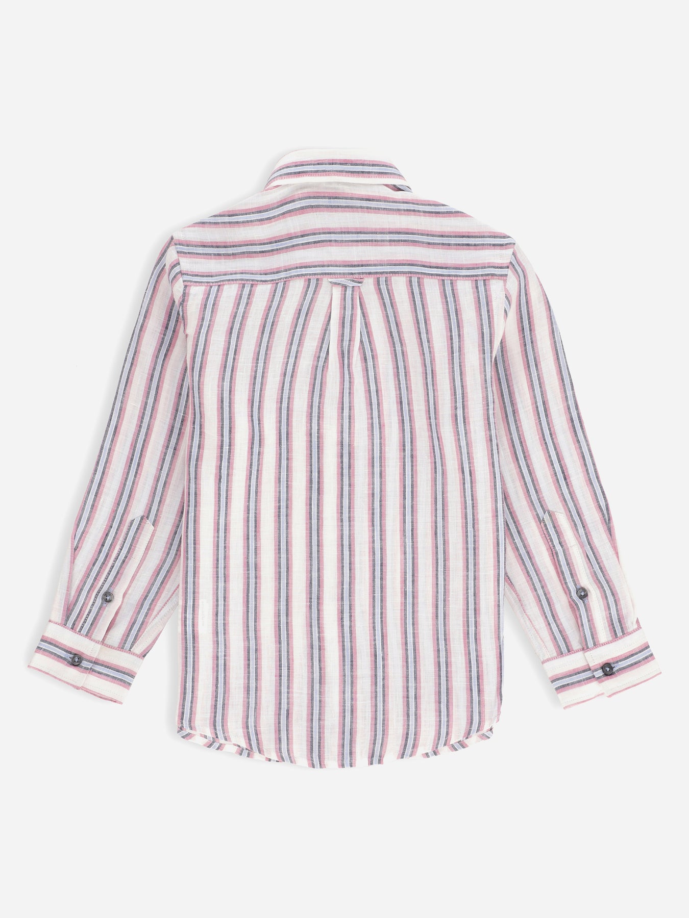Lilac & Blue 100% Linen Striped Casual Shirt