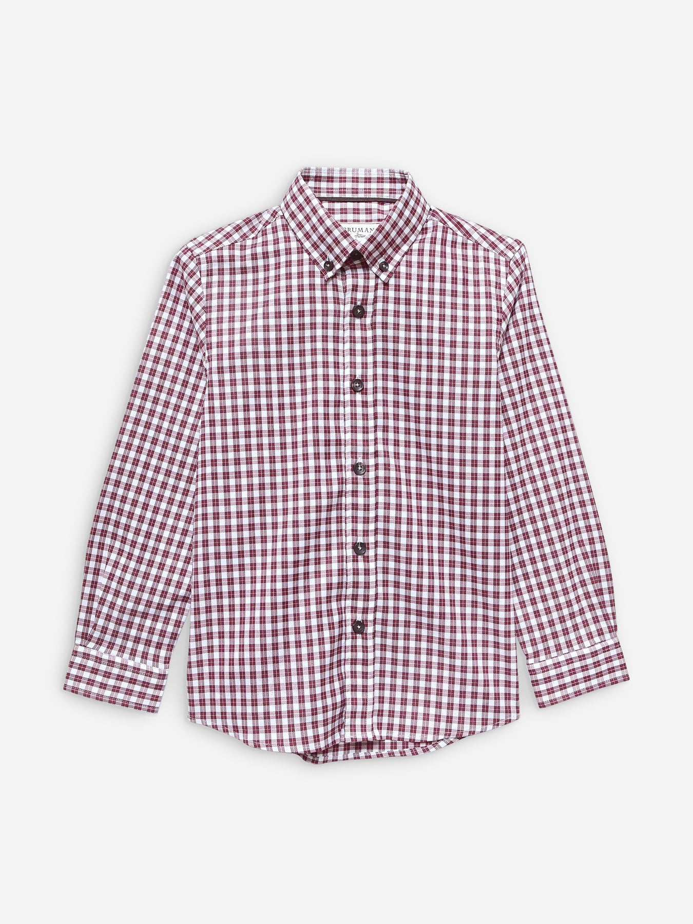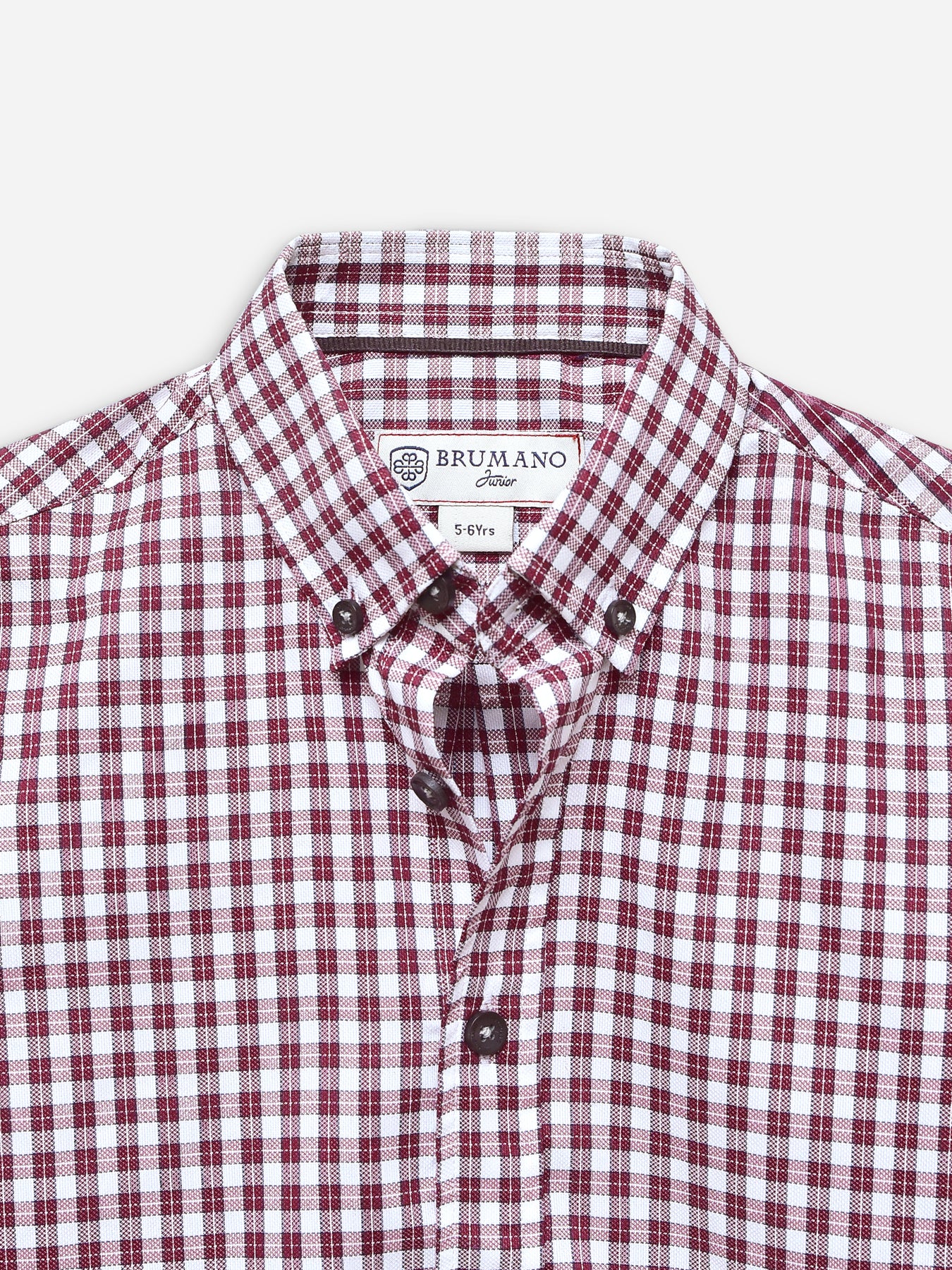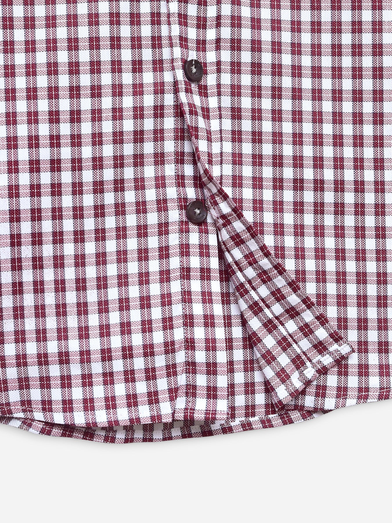Add a classic touch to your child's wardrobe with this maroon & white checkered shirt from Junior collection. Made from 100% cotton fabric, it features button down collar & offers all-day comfort and style. Perfect for casual outings or special occasions, pair it with jeans or trousers for a smart look!