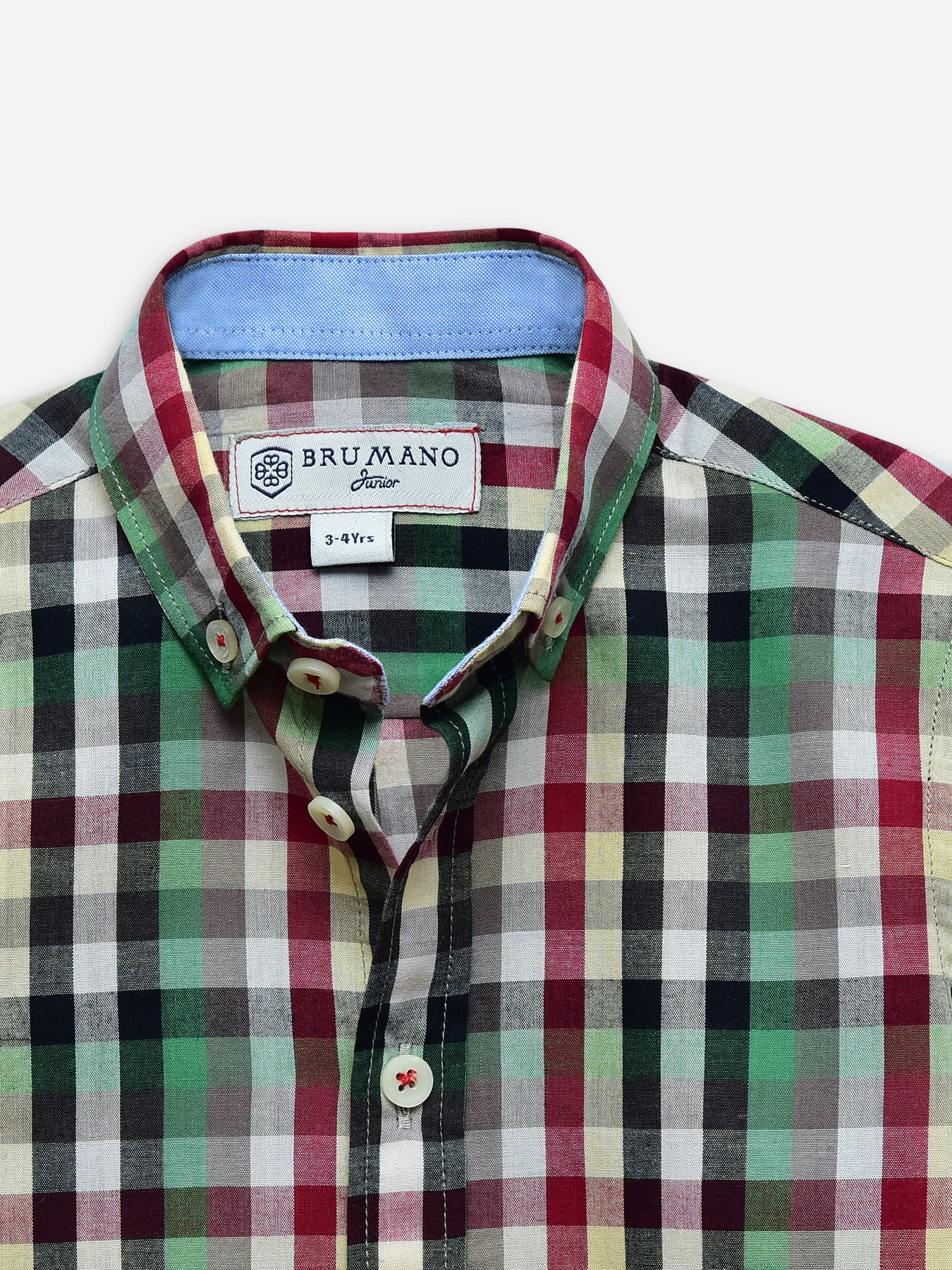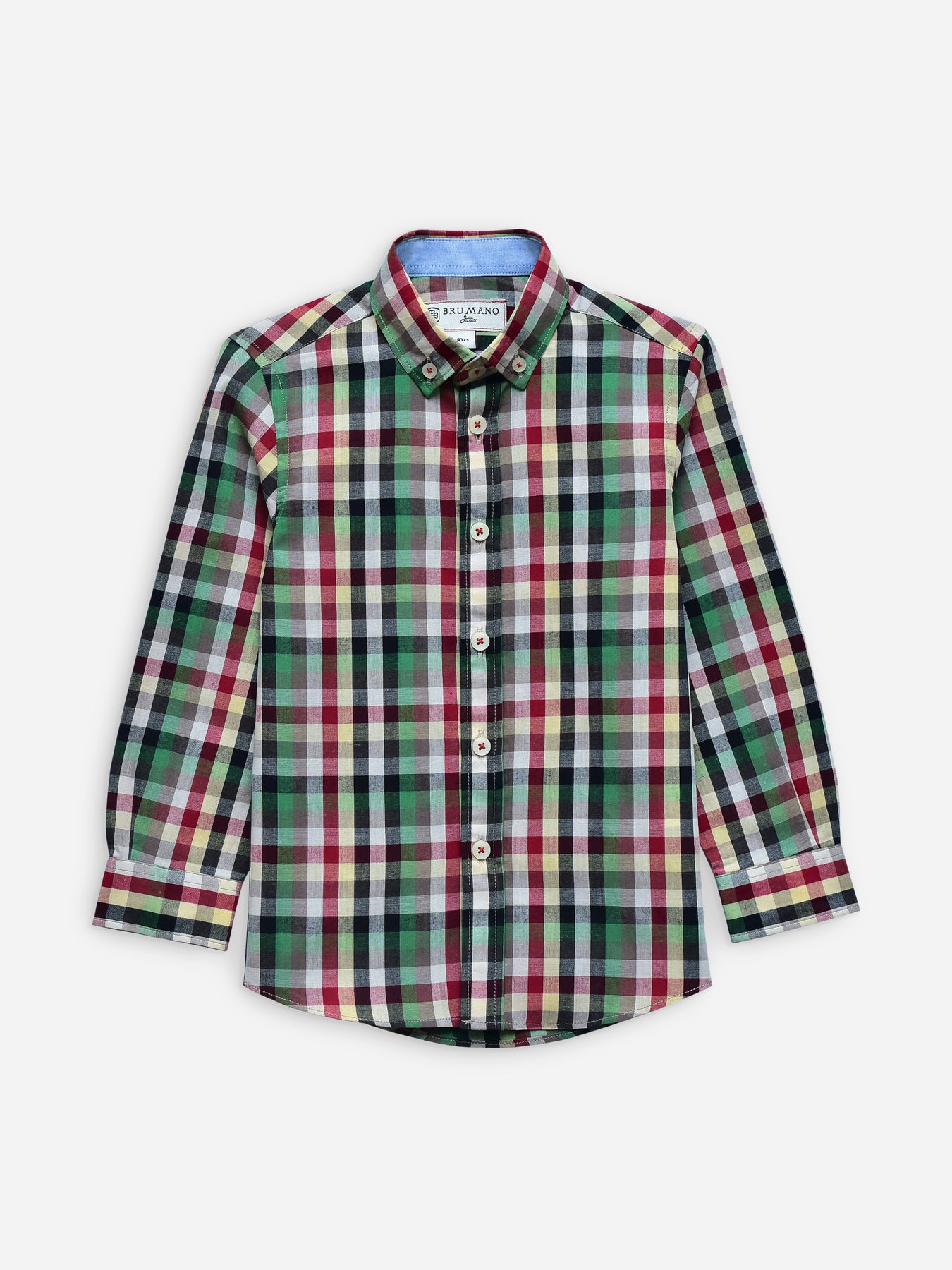 Make a fashion statement with our kids green & red tartan plaid shirt. Playful checkered design with classic button down collar & long sleeves. Ideal for everyday use
