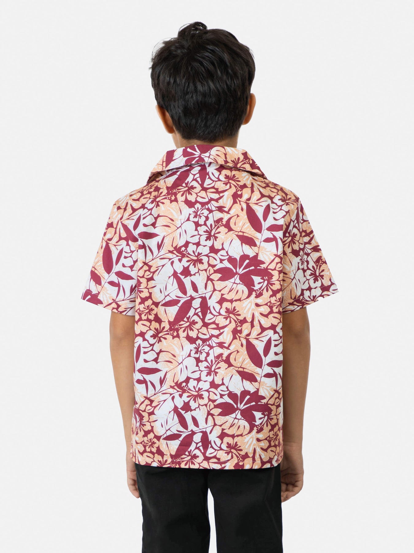 Peach Floral Printed Cuban Collar Half Sleeve Casual Shirt