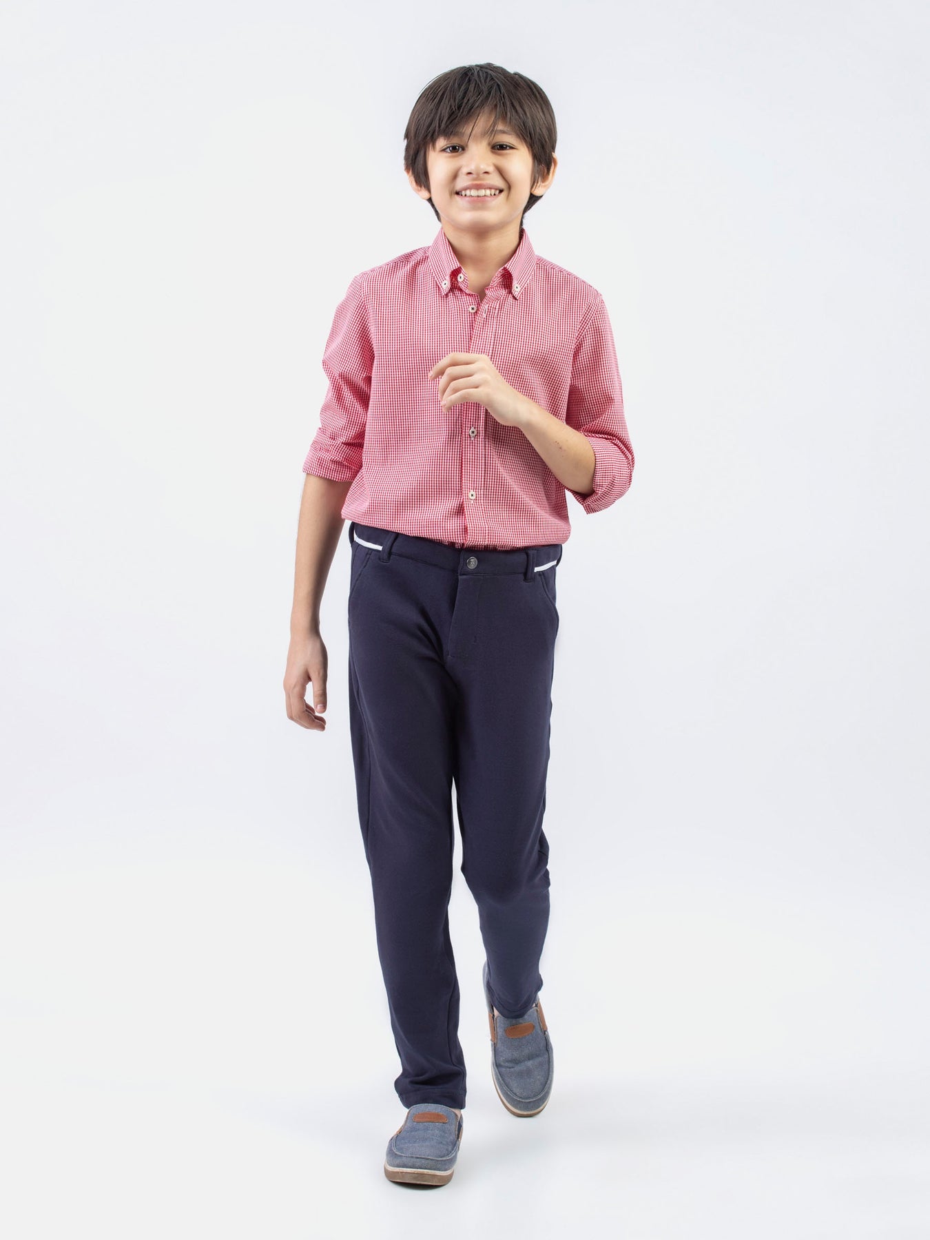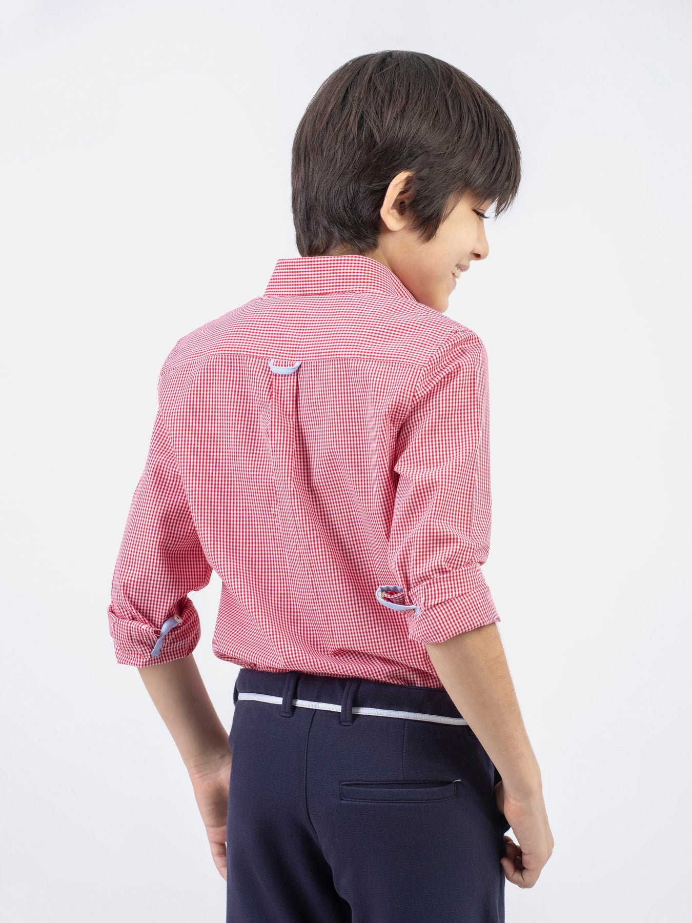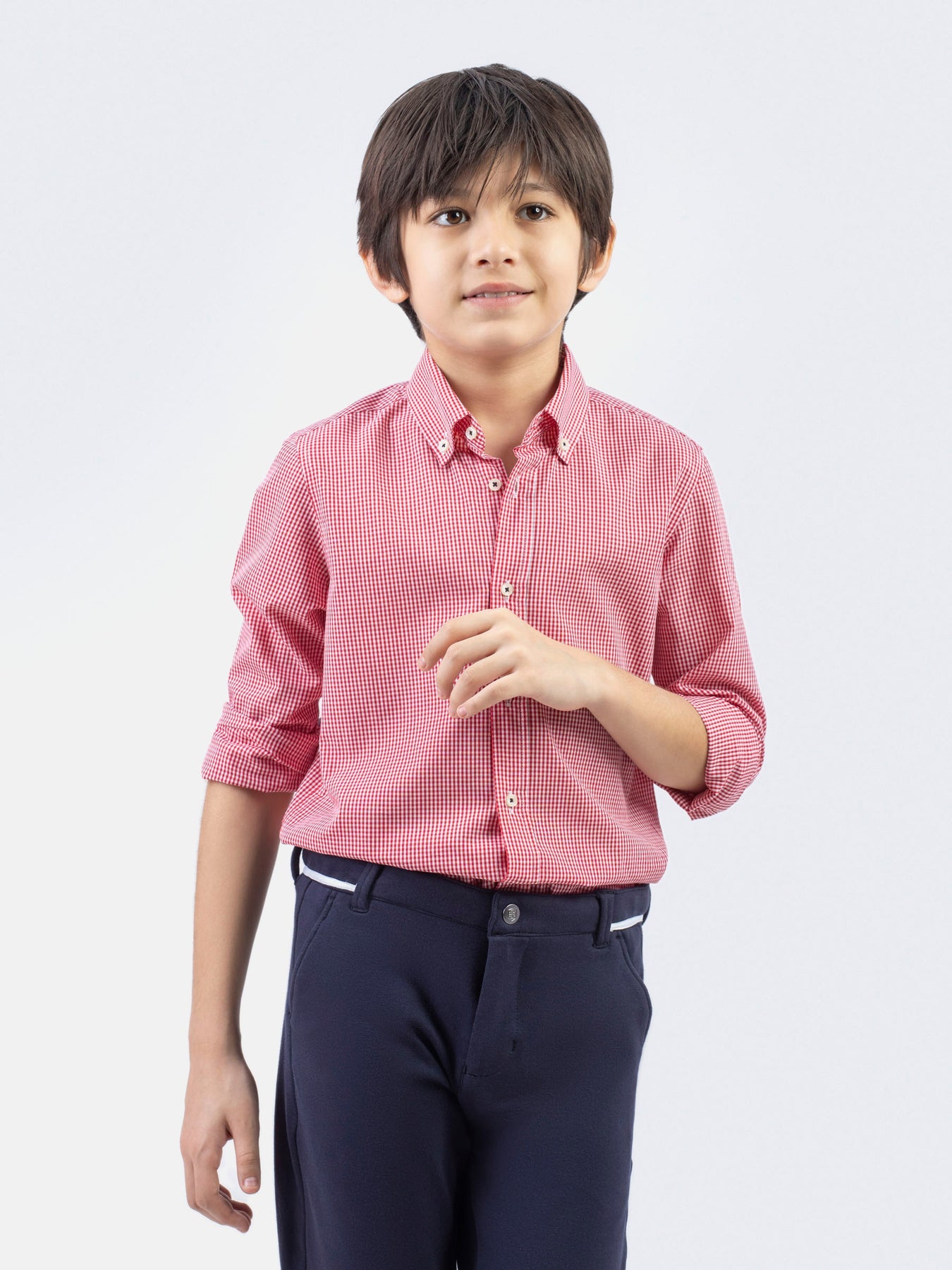 Red Micro Gingham Button Down Casual Shirt