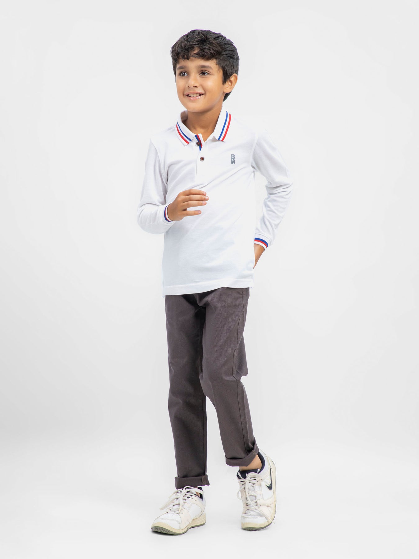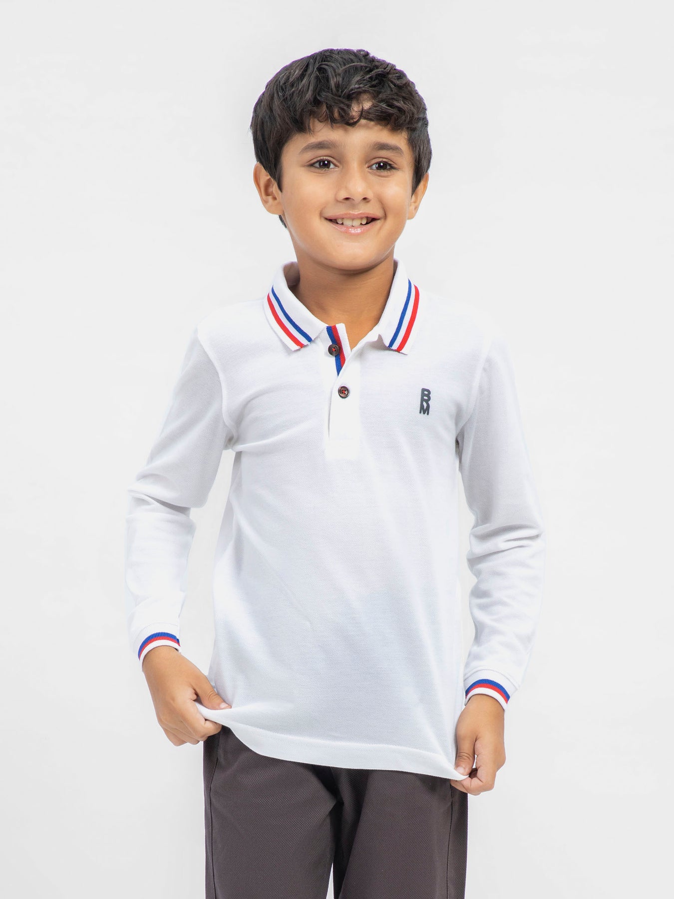 White Contrasting Tipped Long Sleeve Pique Polo