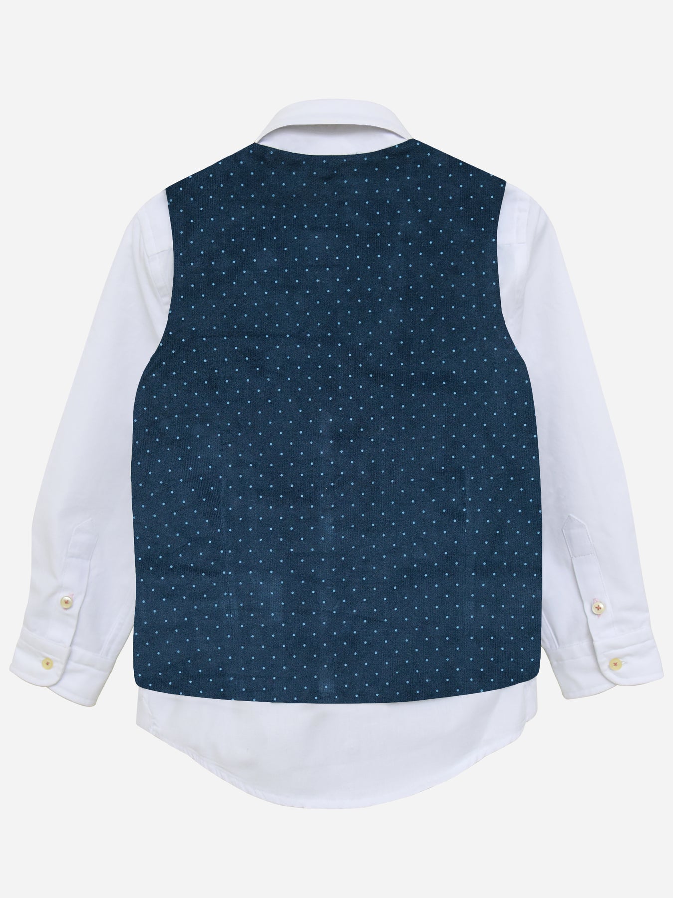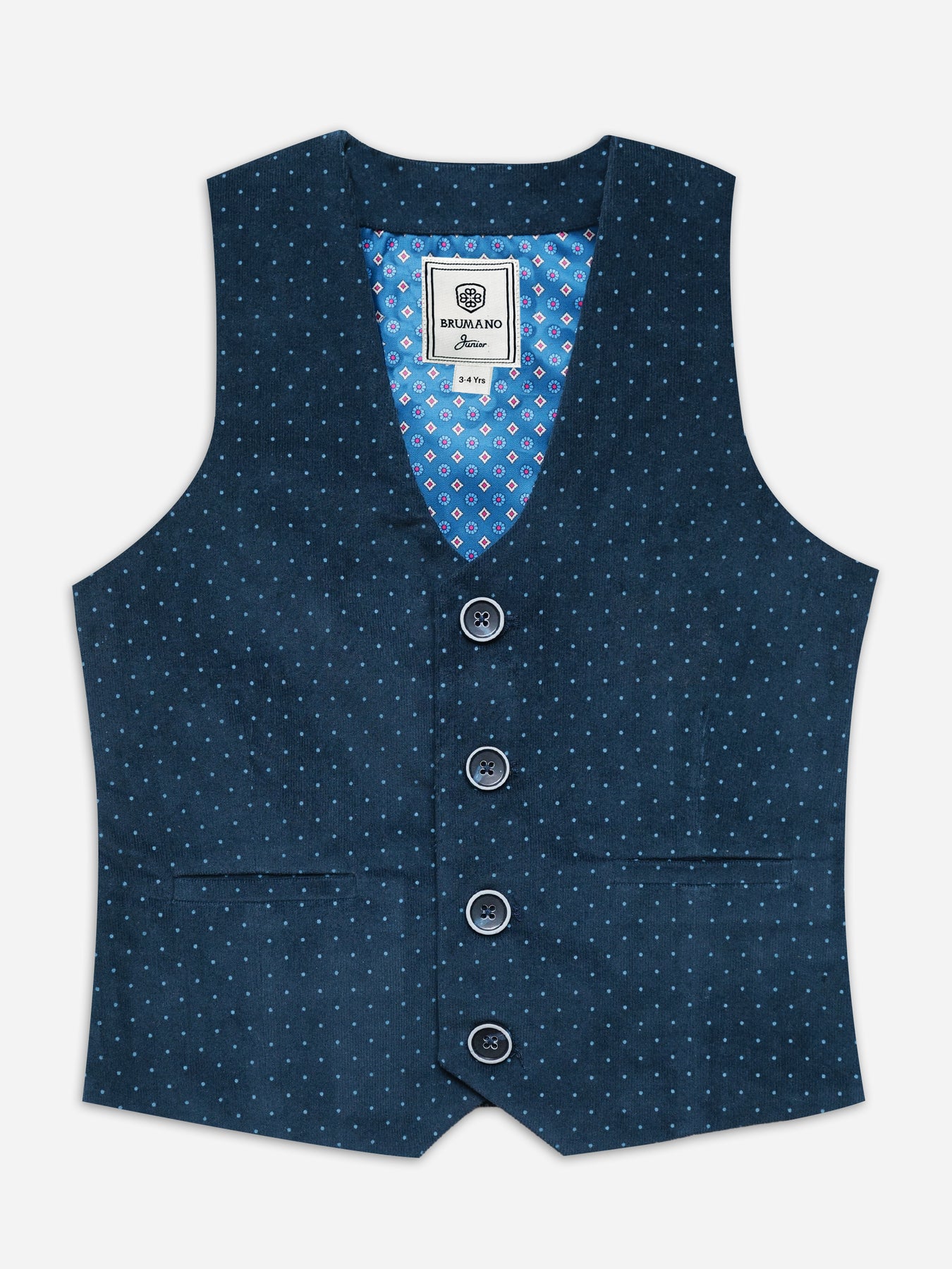 Navy Blue Corduroy Polka Dot Formal Vest with Bow - Junior