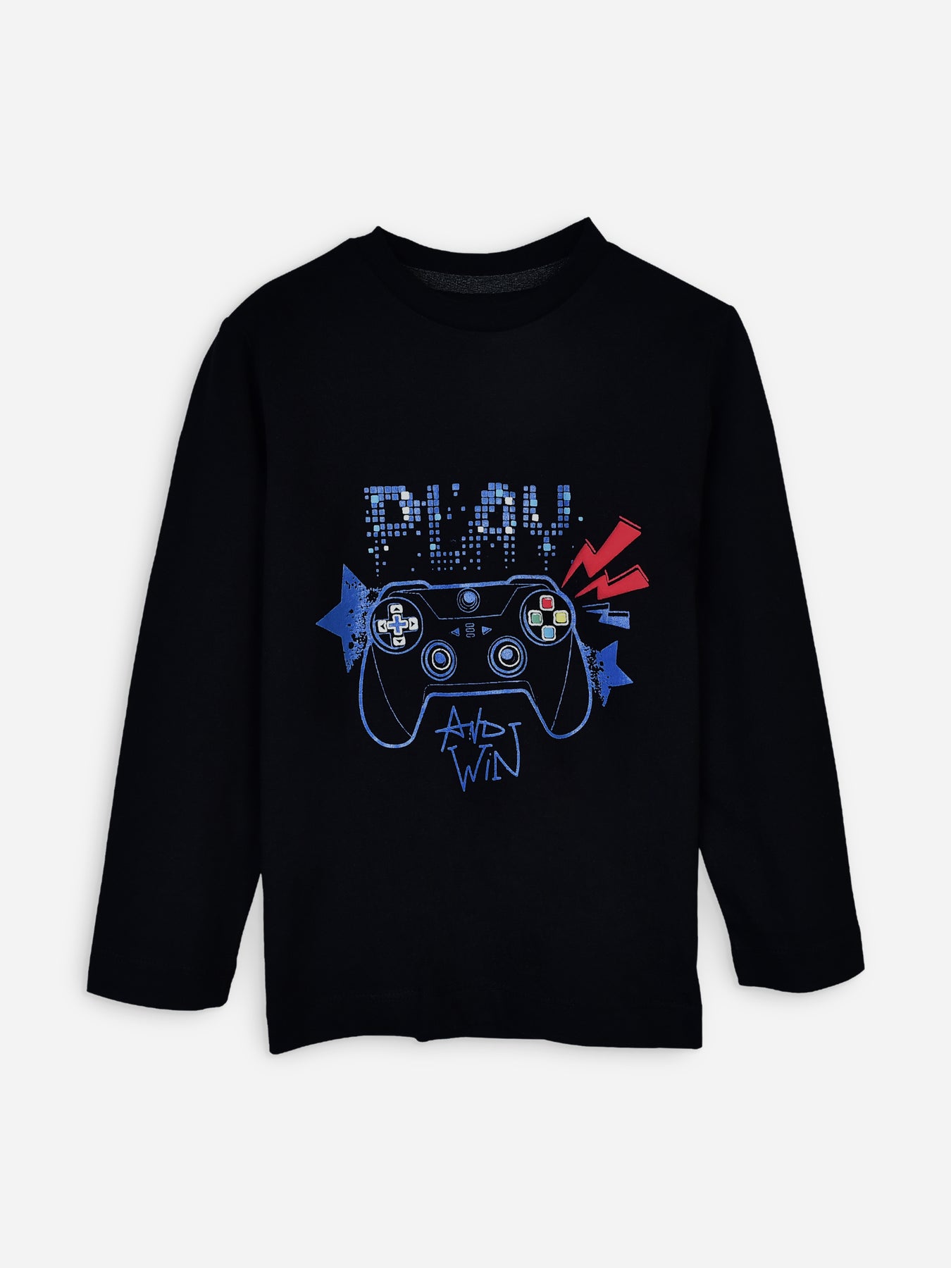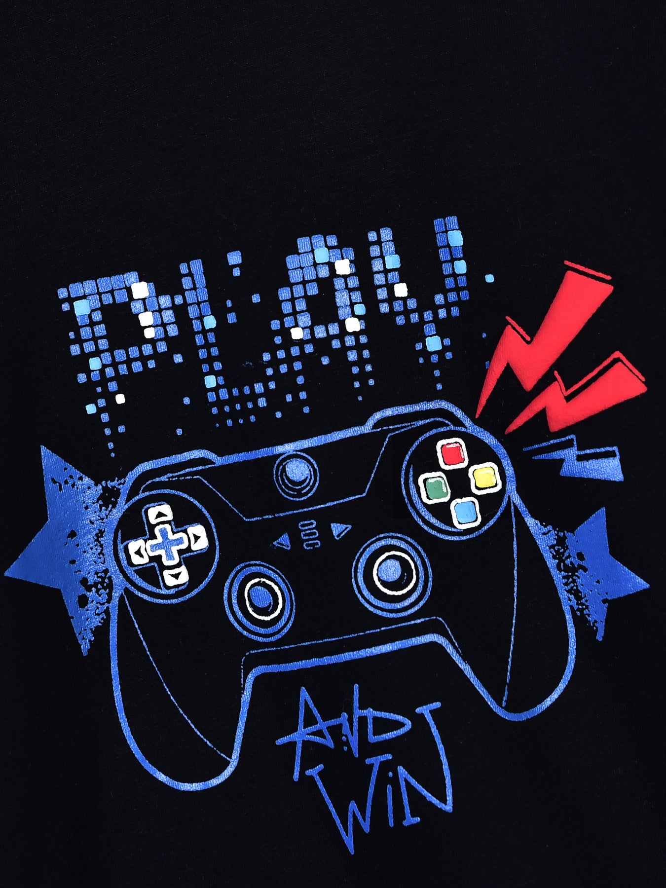 Black Graphic T-Shirt & Striped Pajama Set - Pack of 2