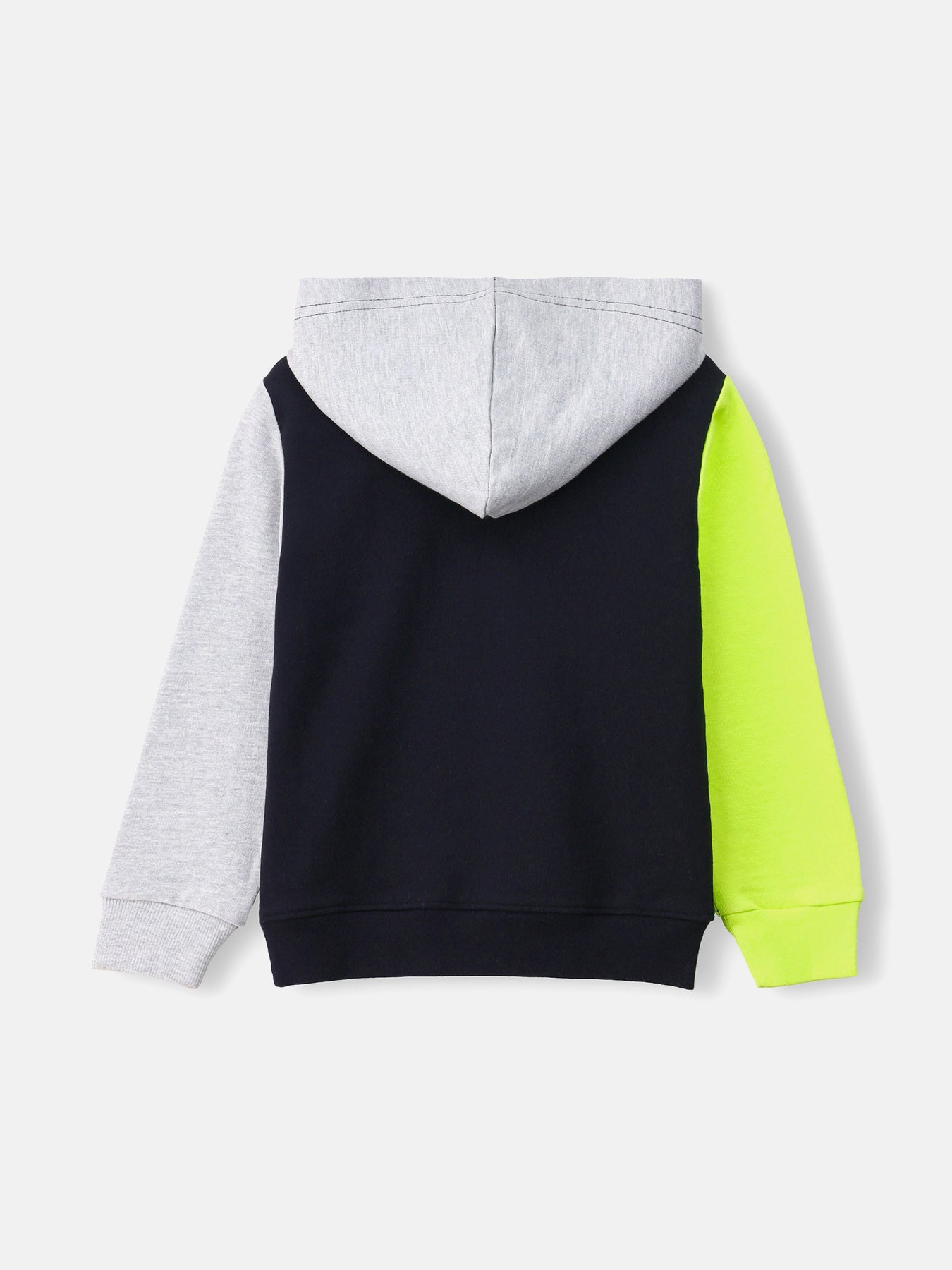 Black & Neon Green Sweatshirt With Contrasting Sleeves & Hood