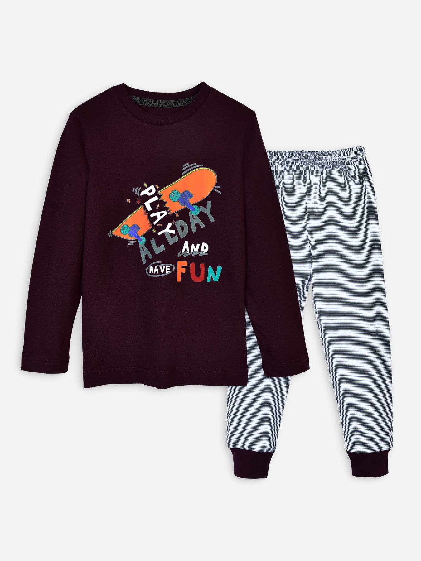 Burgundy Graphic T-Shirt & Striped Pajama Set - Pack of 2
