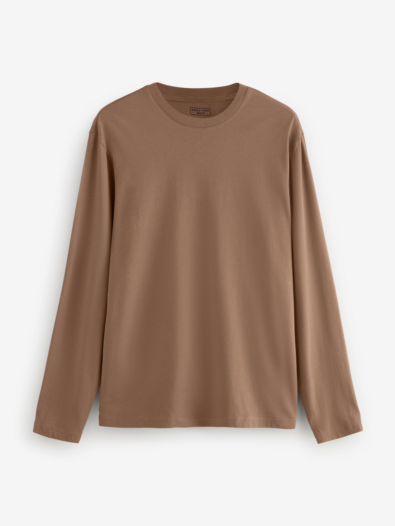 Upgrade your casual wardrobe with this mid-brown long-sleeve crew neck t-shirt. Crafted from soft, breathable fabric, it offers all-day comfort and a sleek, modern fit. Perfect for layering or wearing solo, this versatile tee is a must-have for any season.