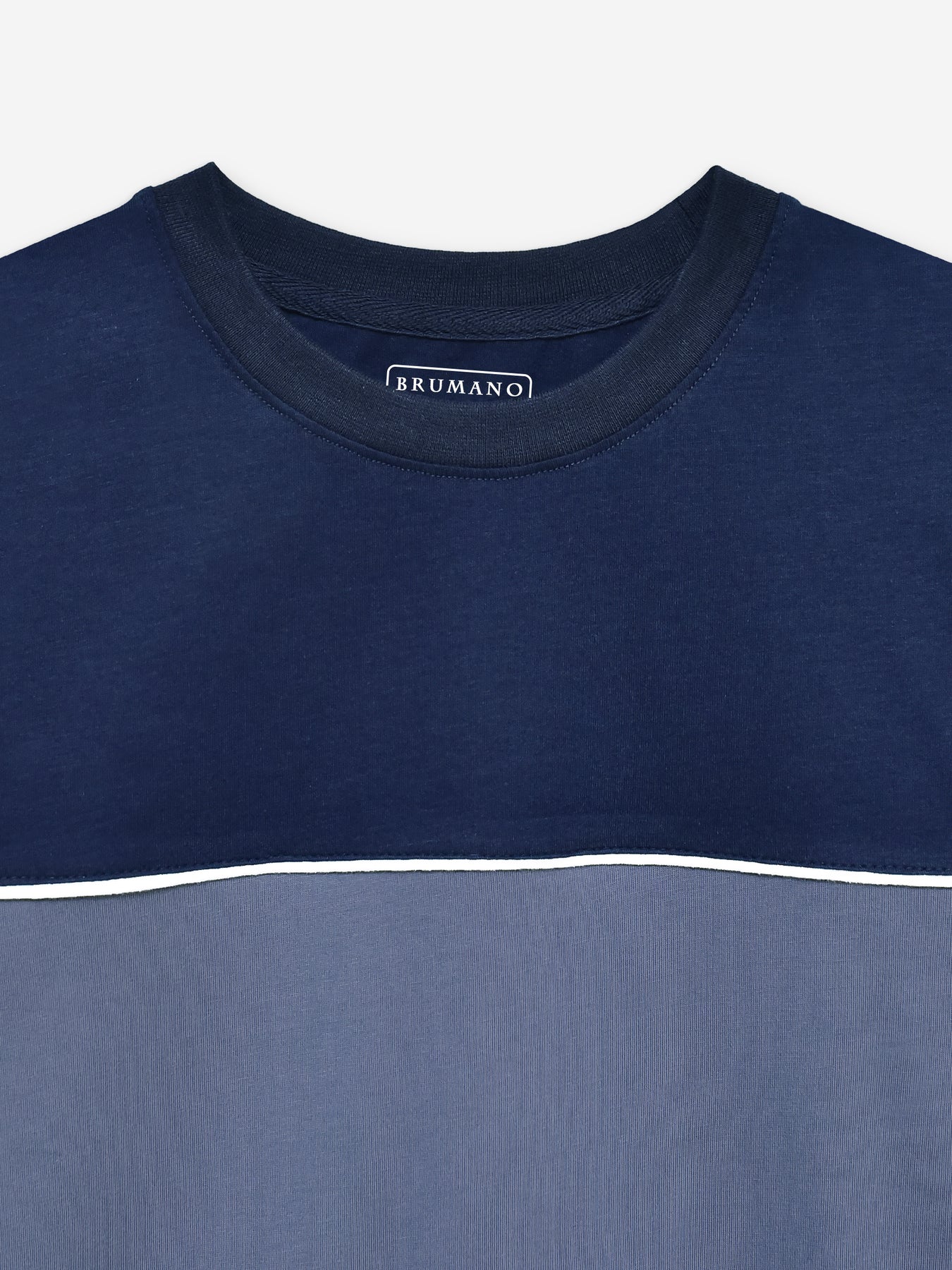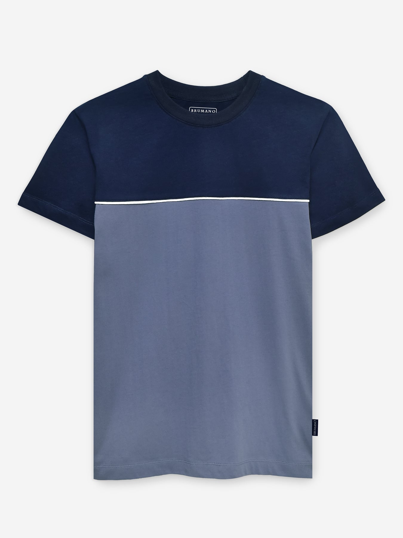 Elevate your casual style with this navy blue two tone crew neck t-Shirt. Featuring ribbed crew neck with two tone body front & subtle contrast detailing, it’s crafted from soft, breathable 100% cotton fabric for all-day comfort. Perfect for layering or wearing solo, this tee adds a modern twist to a timeless essential.