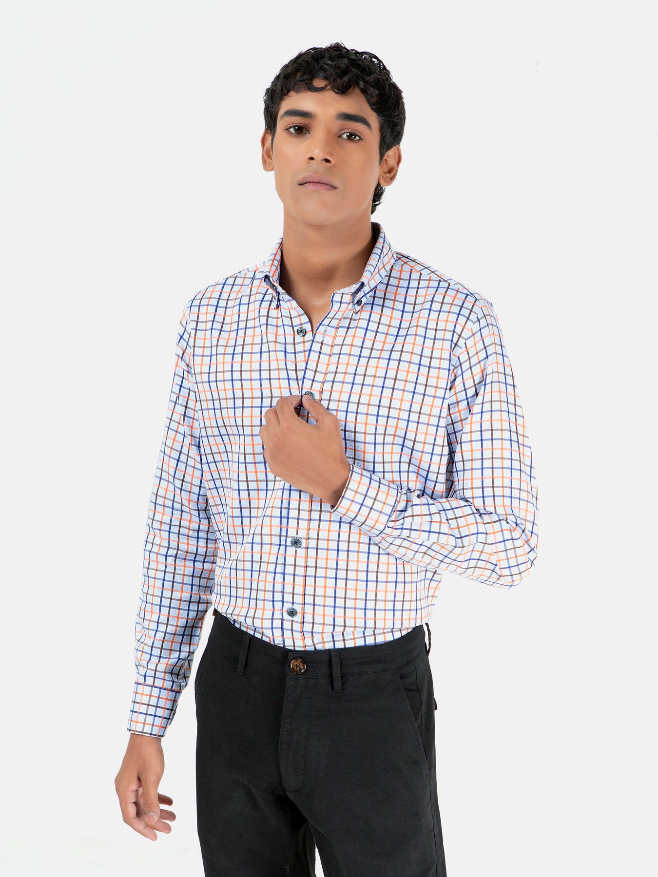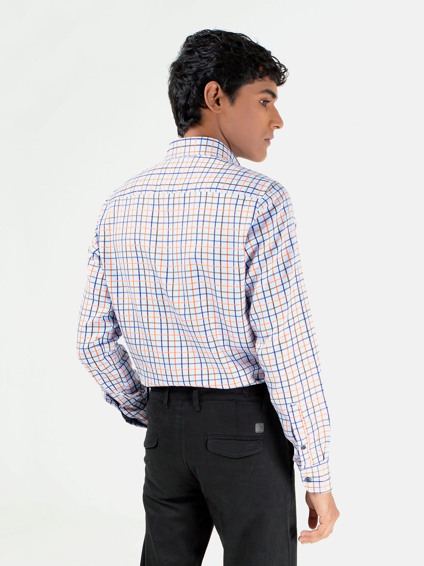 Blue & Orange Windowpane Checkered Button Down Shirt