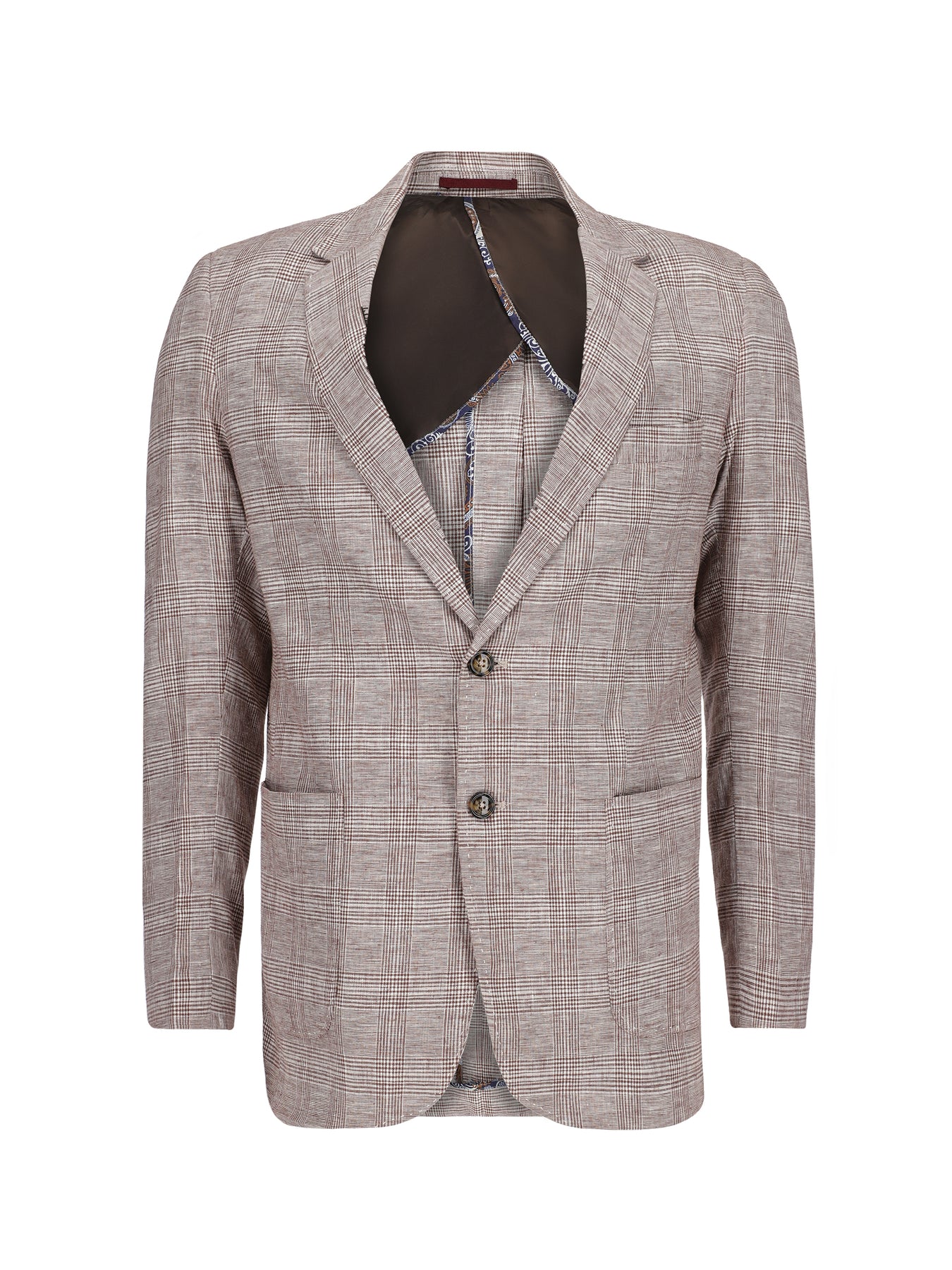 Introducing 100% linen checkered blazer from our summer collection, perfect for warm weather. Made entirely from linen, it offers breathability and a comfortable fit. Ideal for a polished, yet relaxed look.
