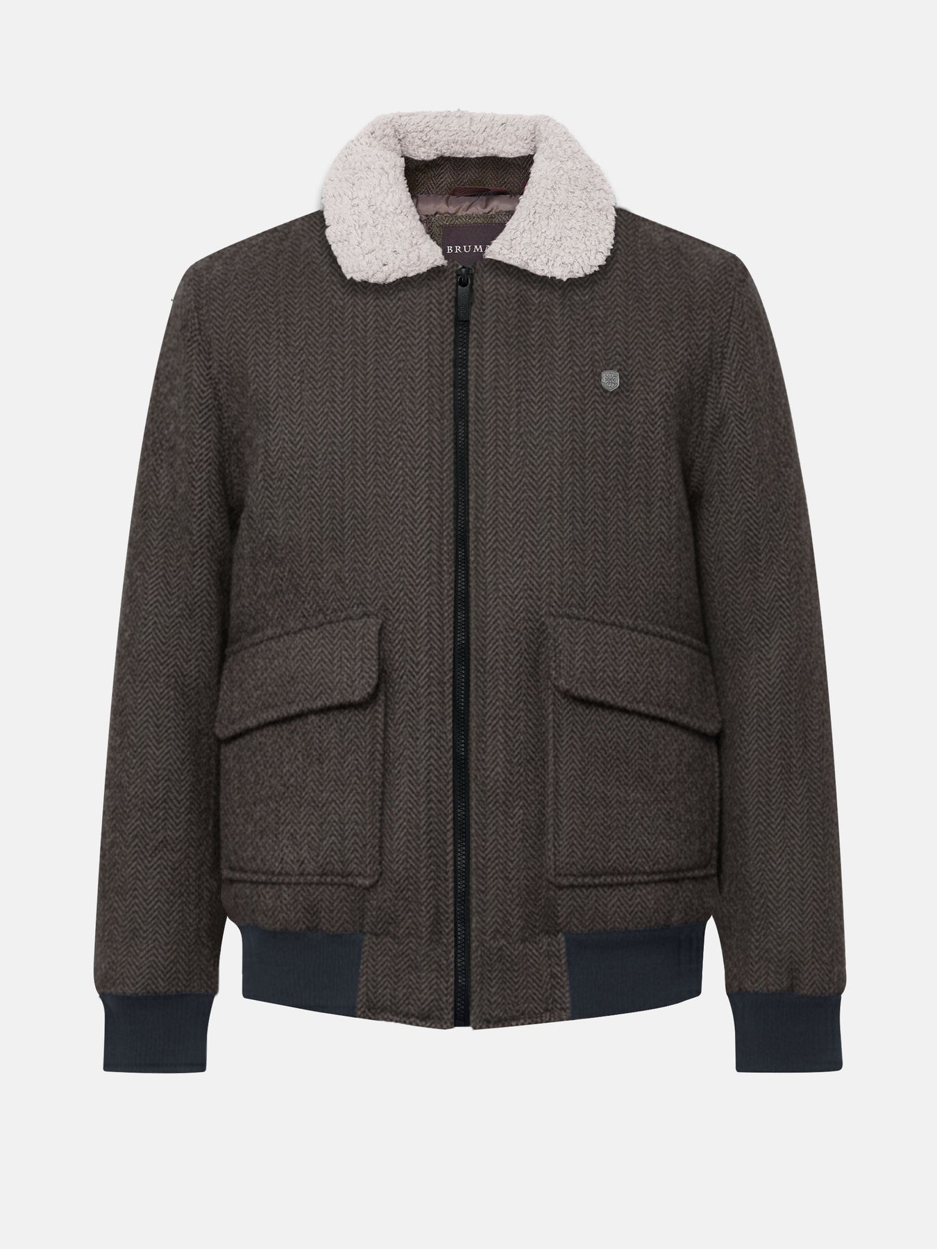 Mens brown wool blended aviator jacket with a cozy beige sherpa collar built for cold days with a classic flight-inspired look. Warm, comfortable, and easy to style with jeans or chinos for an effortless everyday fit. This heavy jacket is idel for minimum temperatures