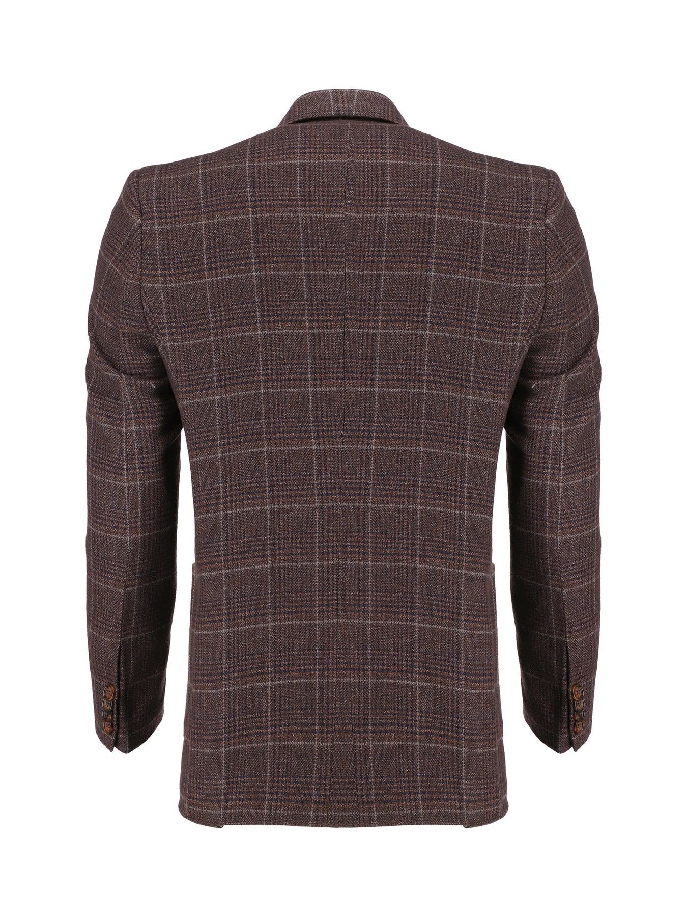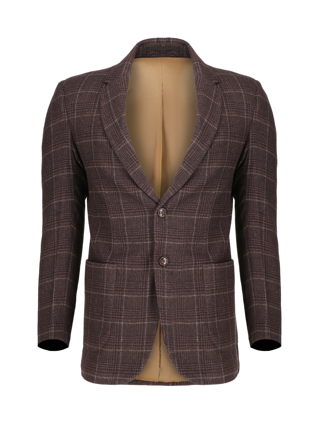 Exclusive brown wool & cashmere blended checkered blazer from Sartoria collection. Single-breasted jacket with patch pockets carefully cut in high-end wool blended fabric. Designed for man who appreciates well-tailored jacket. Finished in smart casual fit. Ideal for winters