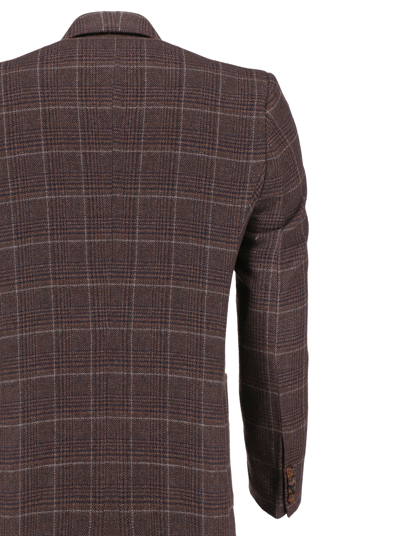 Brown Wool & Cashmere Checkered Blazer - Sartoria