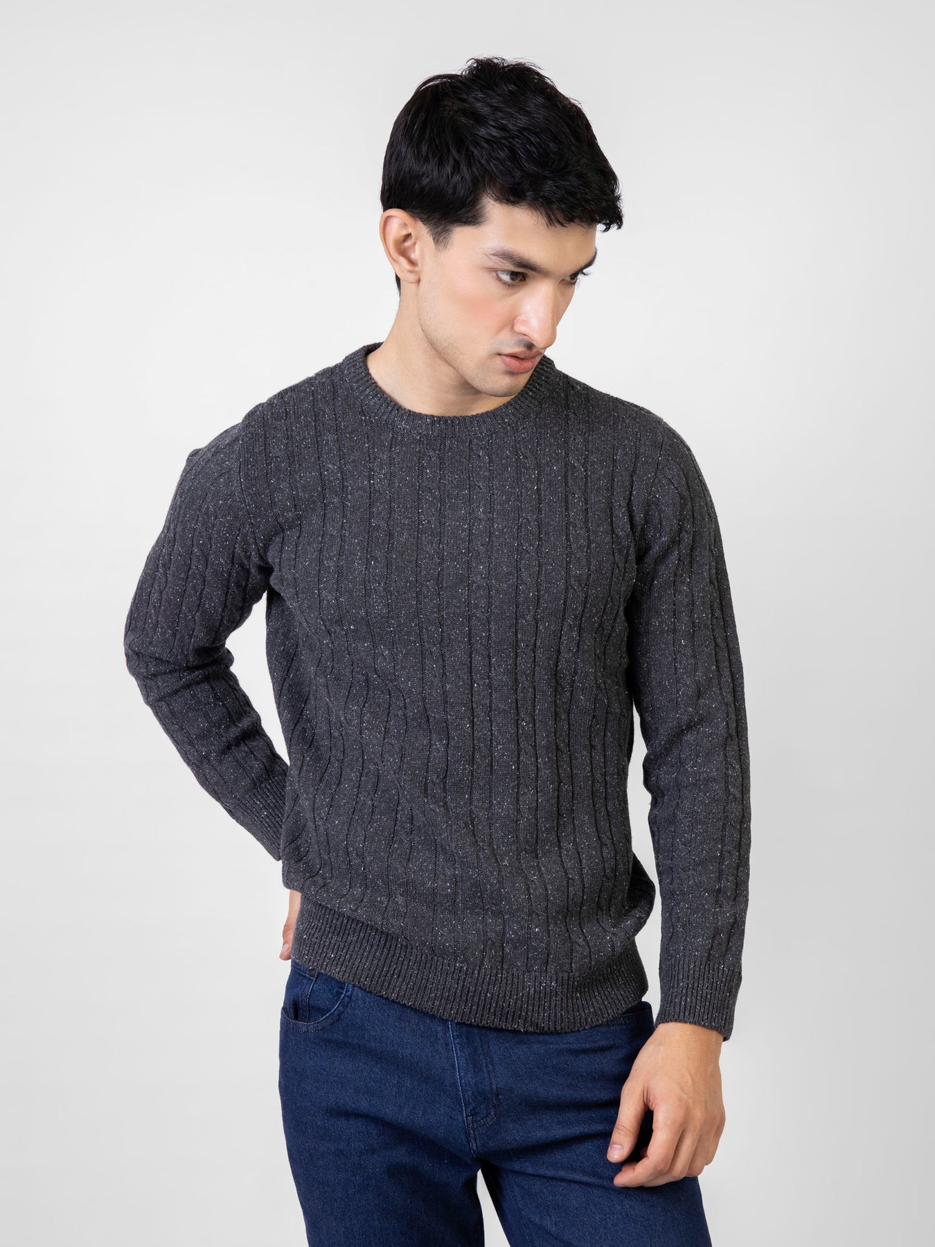 Charcoal Neppy Cable Knitted Crew Neck Jumper