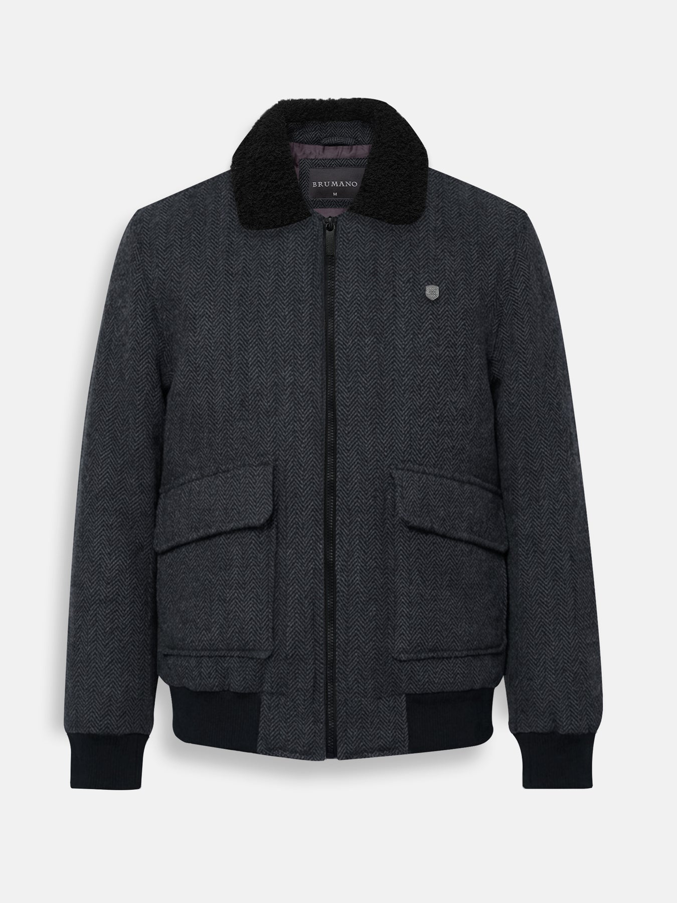 Mens charcoal wool blended aviator jacket with a cozy black sherpa collar, built for cold days with a classic flight-inspired look. Warm, comfortable, and easy to style with jeans or chinos for an effortless everyday fit. This heavy jacket is ideal for minum temperatures