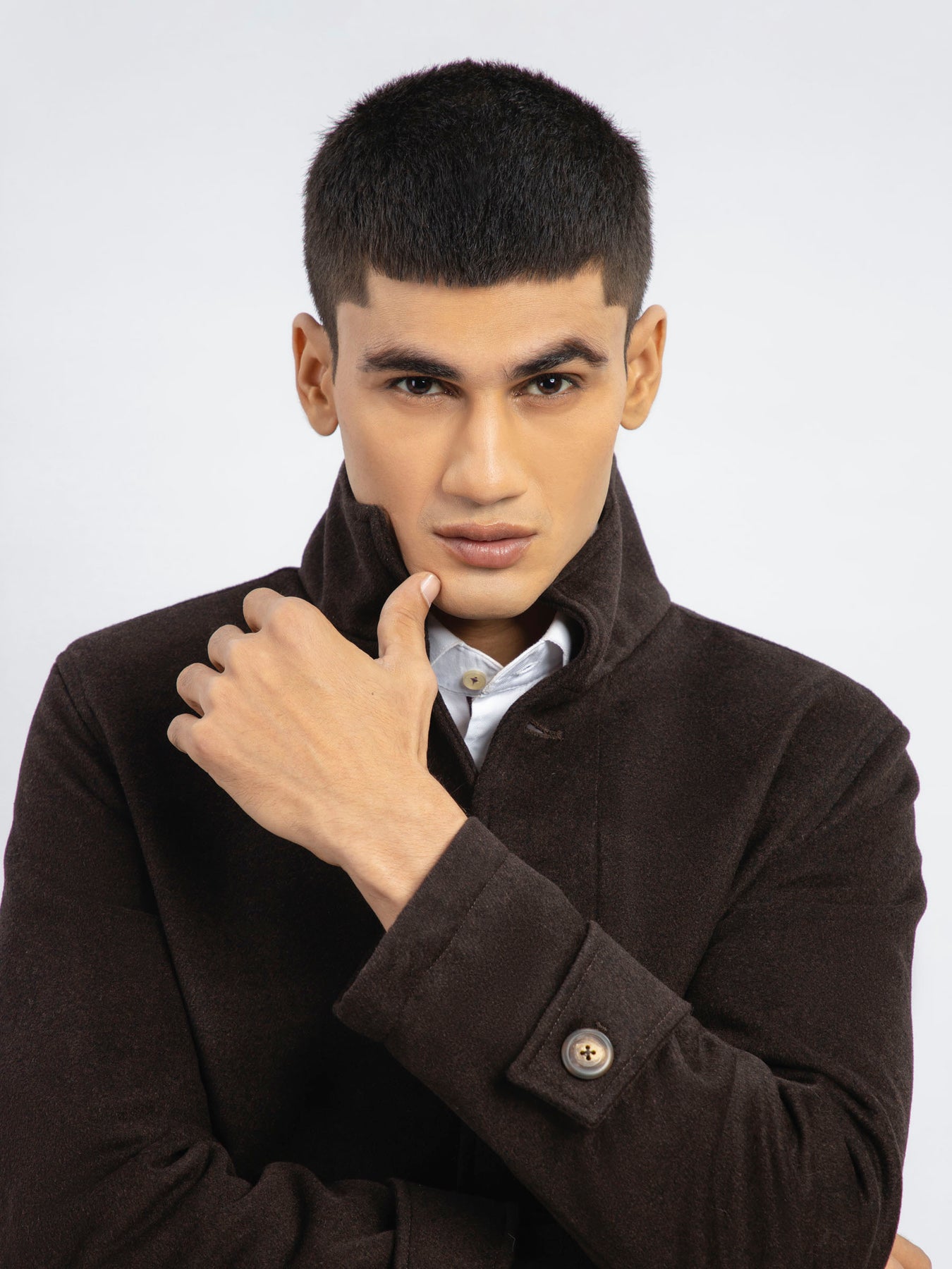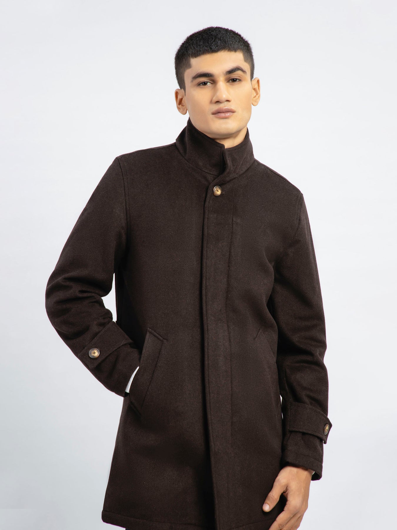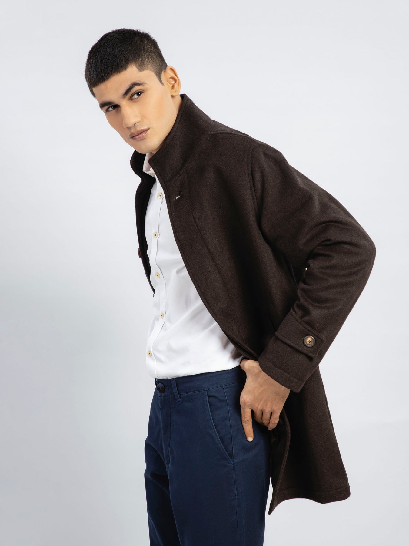 Dark Brown Wool Blended Long Coat - Limited Edition
