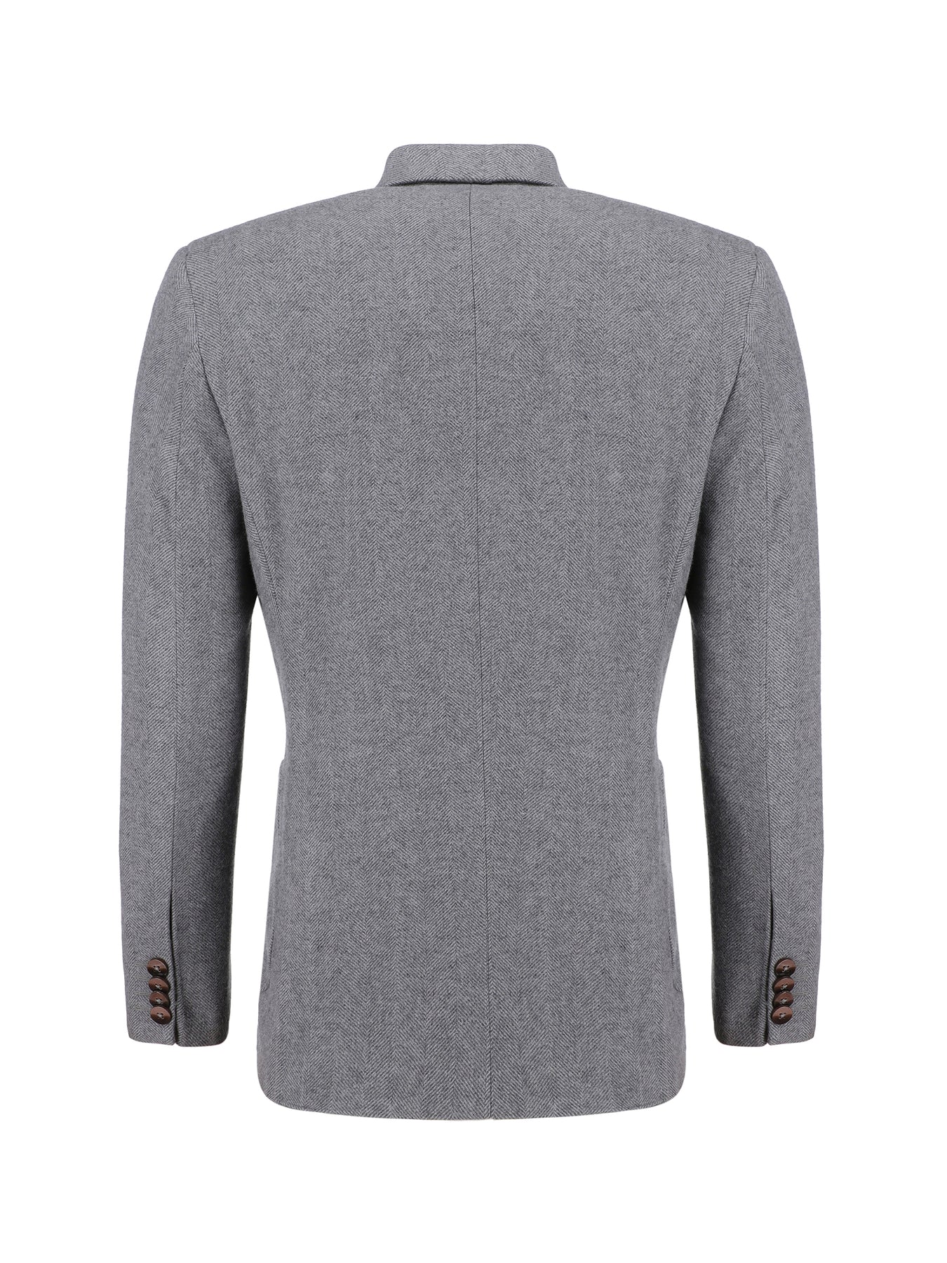 Dark Grey Herringone Wool & Cashmere Blazer - Sartoria