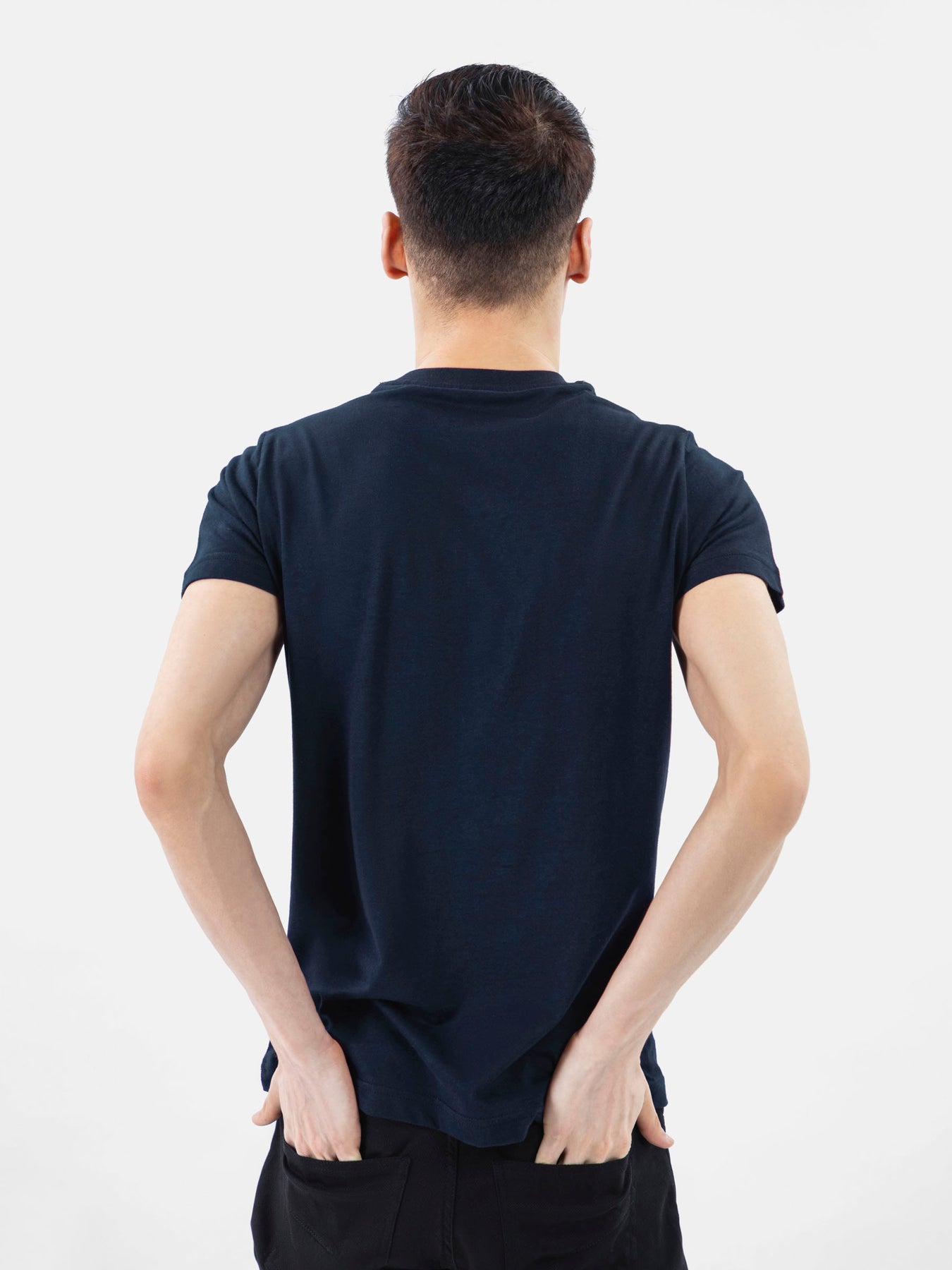 Navy Blue T-Shirt With Paisley Print & Pocket Brumano Pakistan