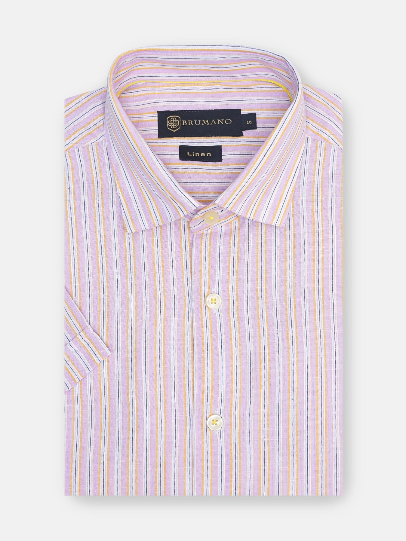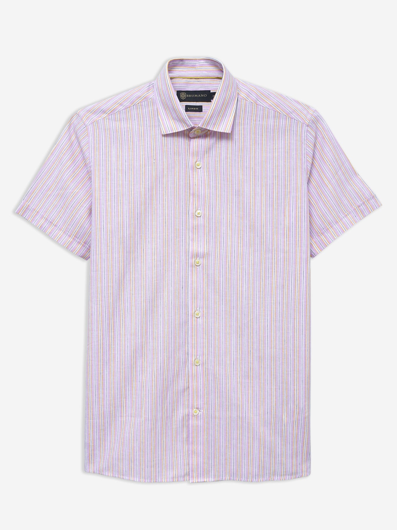 Upgrade your summer casual wardrobe with our linen blended half sleeve shirt. Made with light weight striped fabric, it features shallow collar and a straight bottom for a relaxed yet refined appearance.