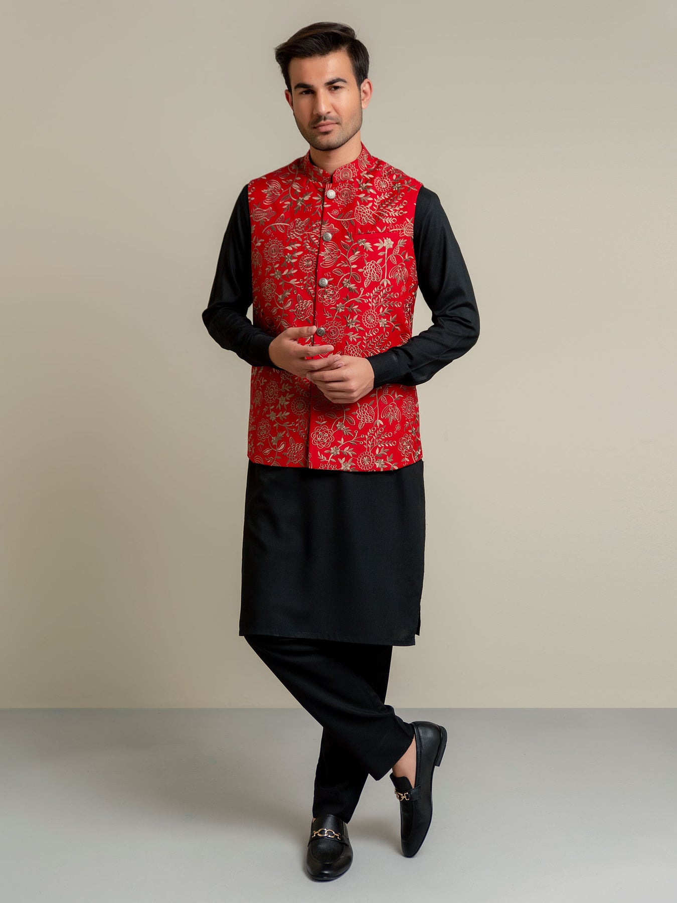 Perfect your sartorial style with this new season edit Sartoria waistcoat. This red embroidered waistcoat is ideal for those who love being the center of attention. Featuring luxurious inner linning