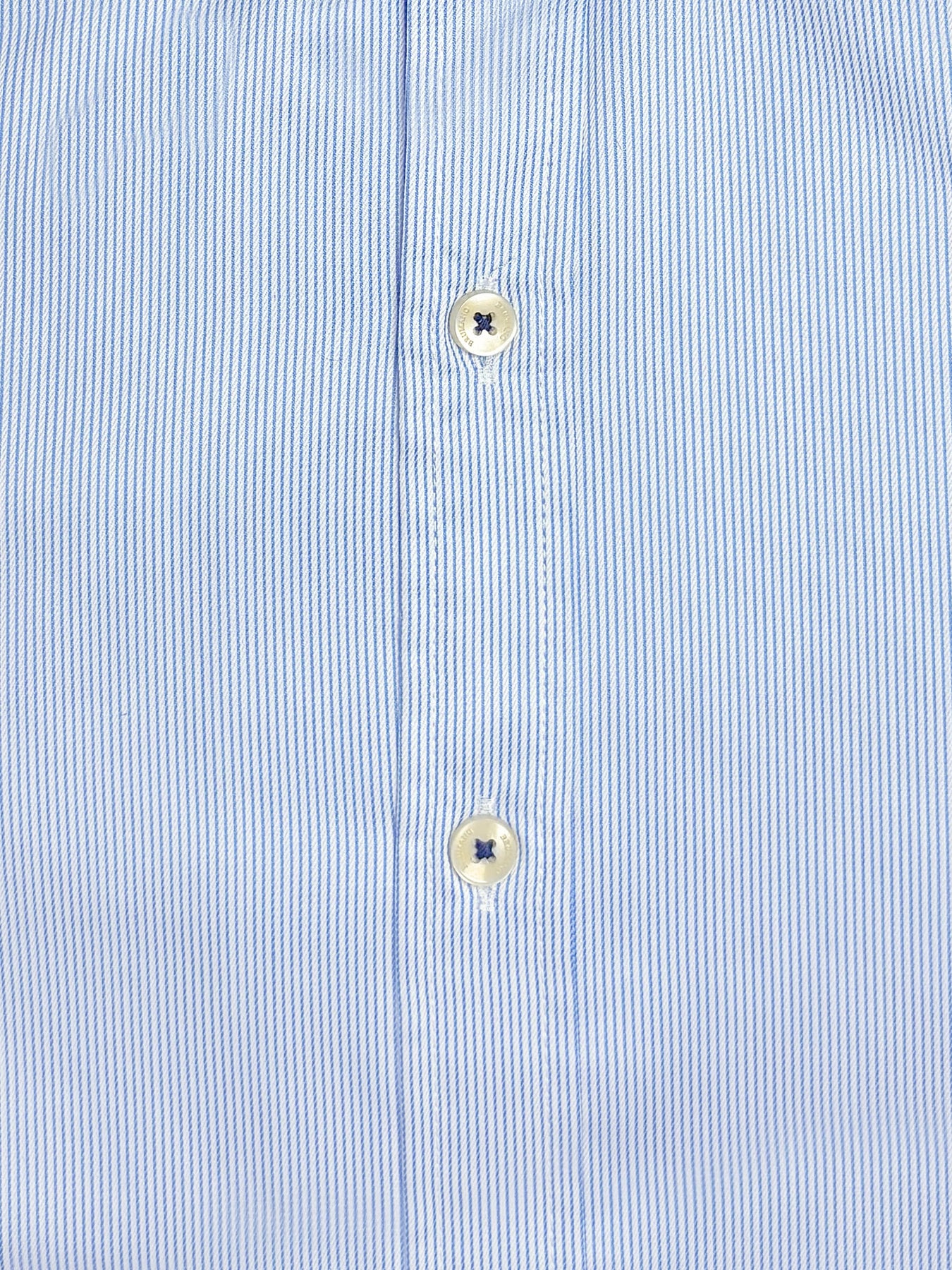 Elevate your formal wardrobe with this sky blue striped formal shirt. Featuring striped design in beautiful fabric. Finished with classic collar, inner collar detailing & branded buttons. Tailored for a polished look that’s perfect for the office or special occasions.