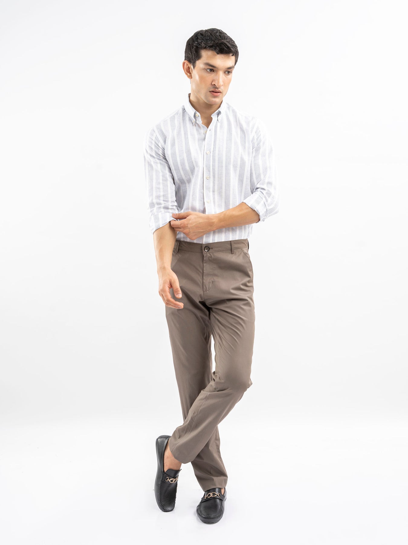 Breeze through the day in style with this white & blue linen striped button down shirt. Made from lightweight linen, it features crisp stripes for a clean, classic look—perfect for sunny days and laid-back sophistication. Finished with button down collar with ribbon detailing