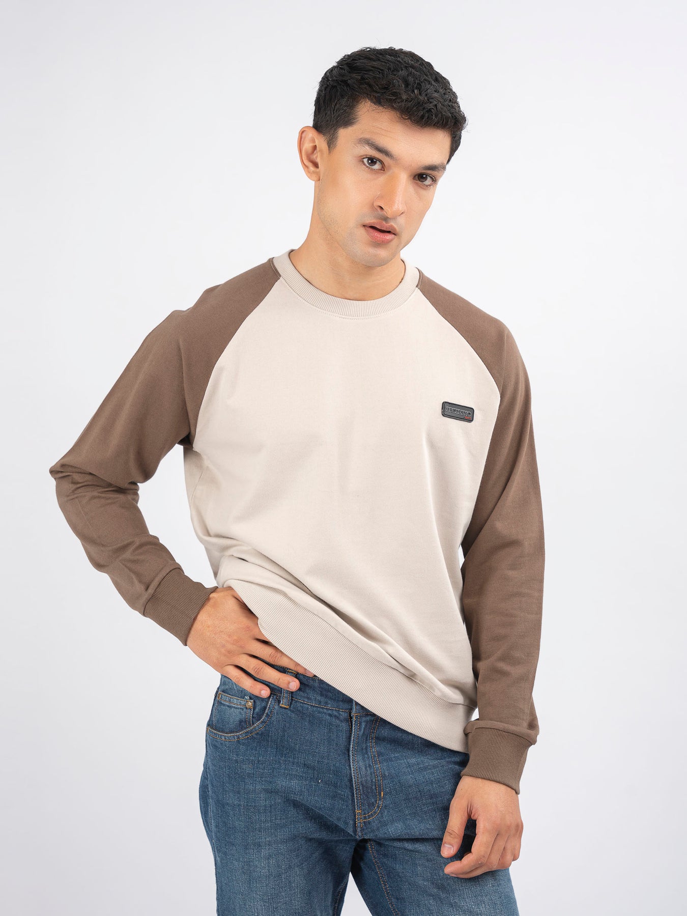 Elevate your casual wardrobe with our beige & brown raglan sleeves crew neck sweatshirt. Crafted from soft, breathable fabric, it features a stylish raglan sleeve design for a sporty yet sophisticated look. Perfect for everyday wear, it blends comfort and versatility effortlessly.