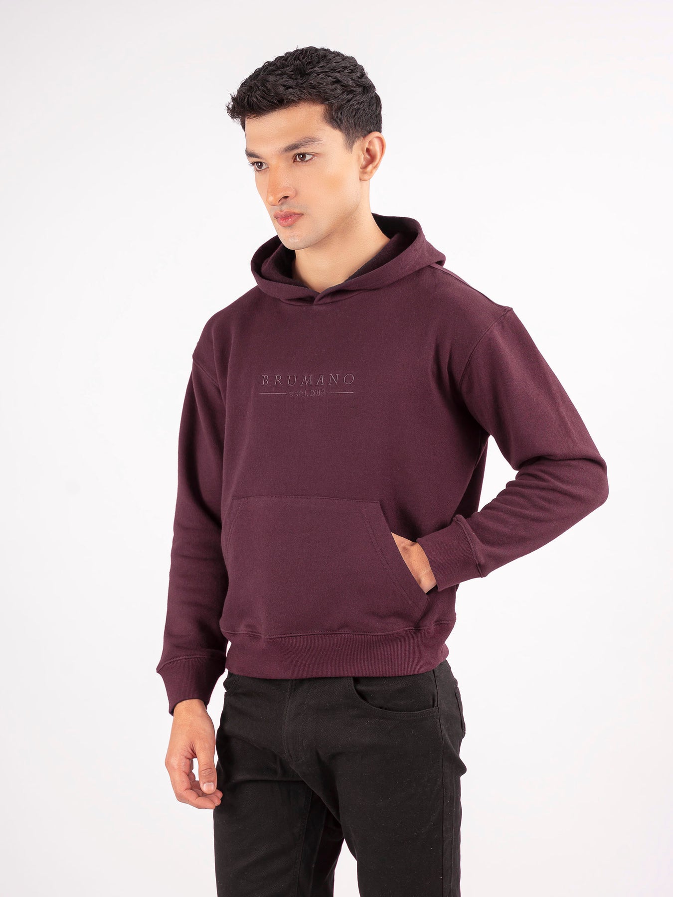 Stay cozy and stylish with our burgundy embroidered relaxed fit hoodie. Featuring same tone embroidery and a laid-back silhouette, this hoodie combines comfort and elegance effortlessly. Perfect for casual outings or lounging in style, its soft fabric and neutral tone make it a versatile wardrobe staple.