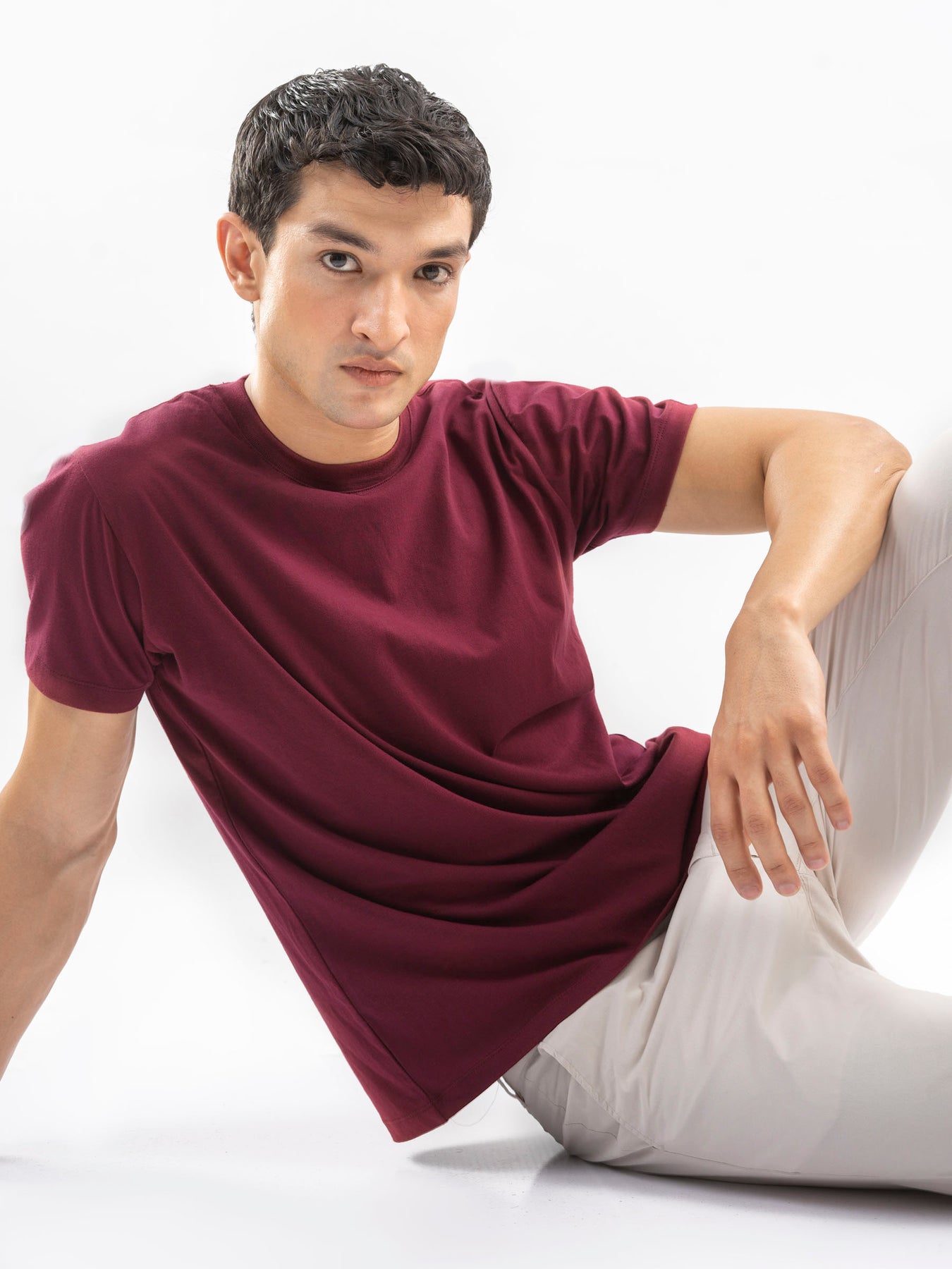 Keep it classic with this maroon 100% cotton basic tee. Soft, breathable, and lightweight, this everyday essential offers all-day comfort and a timeless fit. Perfect for layering or wearing on its own.