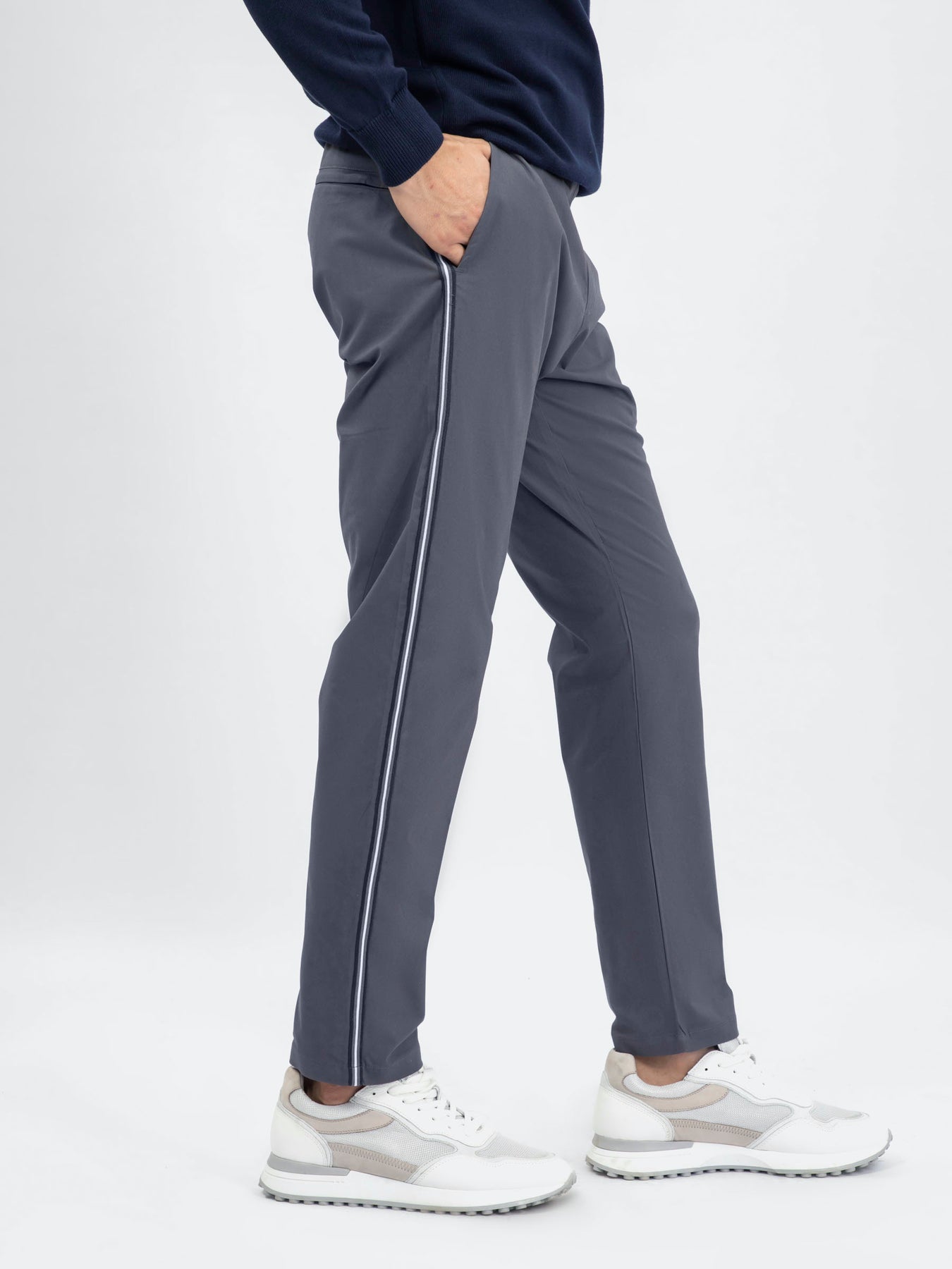 Introducing our new dark grey pajama made with cotton fabric with added stretch for comfort. An ideal pick for lounging or traveling, it features maroon detailing on sides to elevate your look. Soft handfeel, two side pockets and back pocket with zip to ensure safety for your valuables. Ideal for everyday use