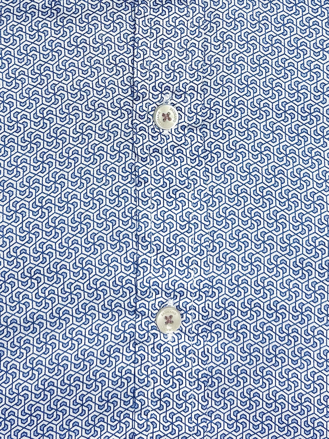 Add a pop of style to your wardrobe with this blue geometric printed shirt. Featuring a modern geometric pattern in vibrant shade of blue, this shirt blends classic tailoring with a contemporary edge. Made from soft, breathable fabric, it’s perfect for both casual outings and smart-casual occasions.