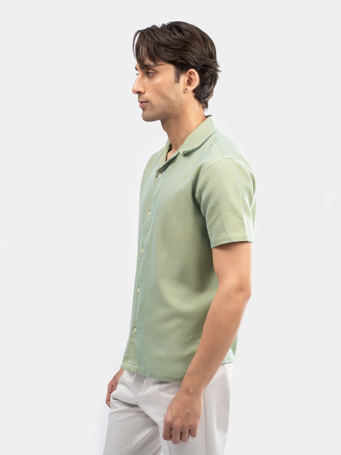 Green Two Tone Cuban Collar Shirt
