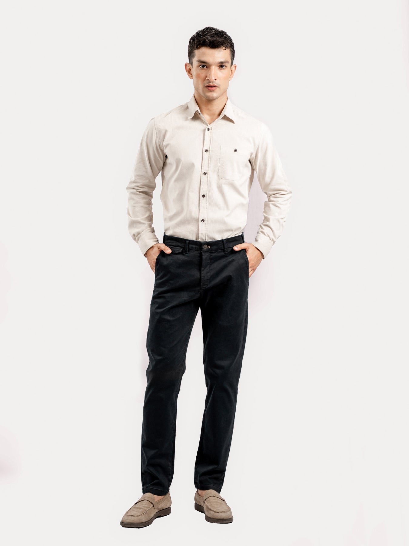 Elevate your casual style with this light beige corduroy shirt. Designed in a rich textured corduroy fabric, it offers a soft feel with a structured look. Finished with casual collar, long sleeves & font pocket while the corduroy finish adds a timeless, vintage-inspired touch. Perfect for layering in cooler weather
