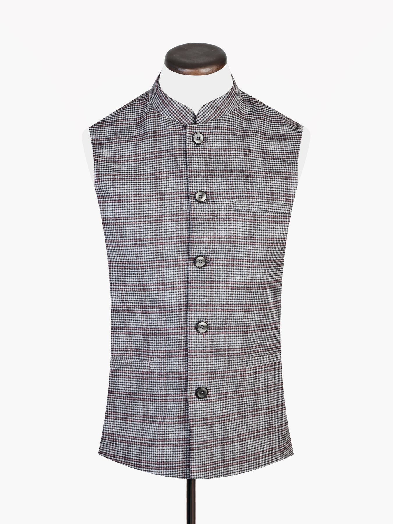 Light Grey Micro Checkered Wool Blended Waistcoat