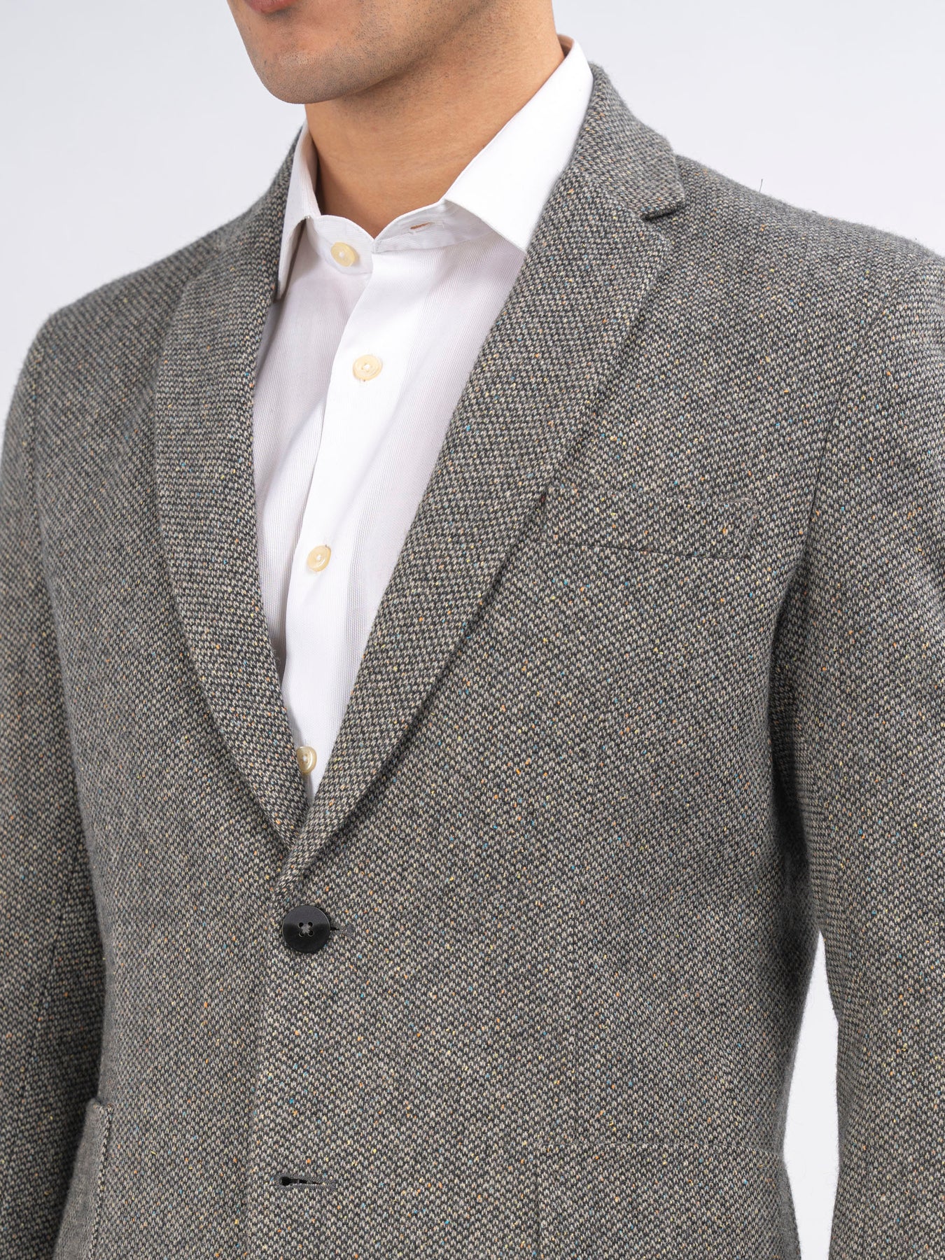 Mid Grey Herringbone Wool & Cashmere Blazer - Sartoria
