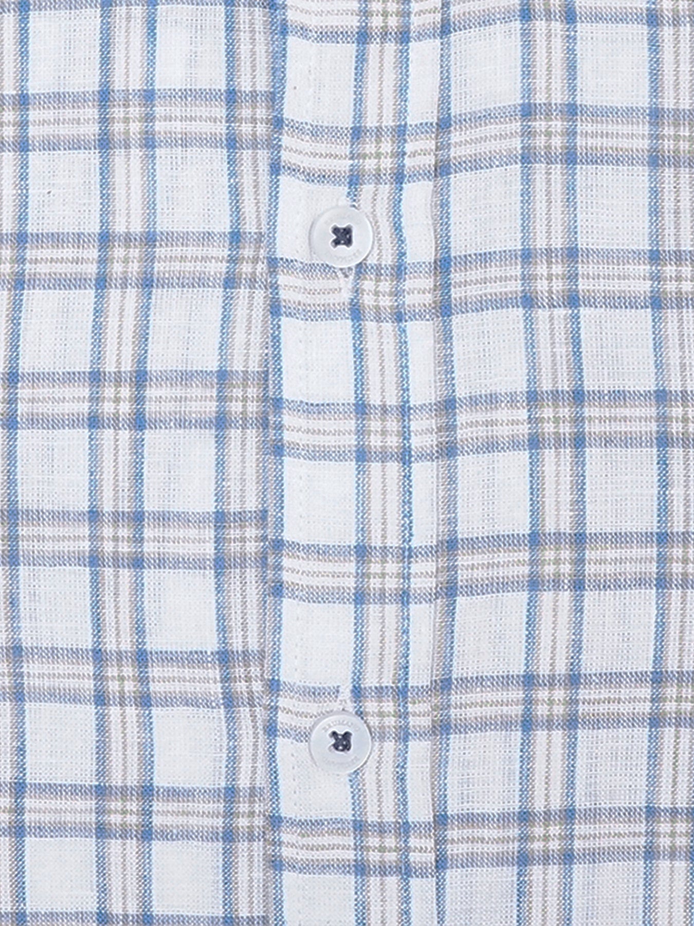 Crafted from breathable linen, this off-white & blue button down shirt blends timeless style with everyday comfort. Featuring a crisp button-down collar and a subtle color contrast, itβs perfect for warm-weather dressing with a refined, laid-back look.
