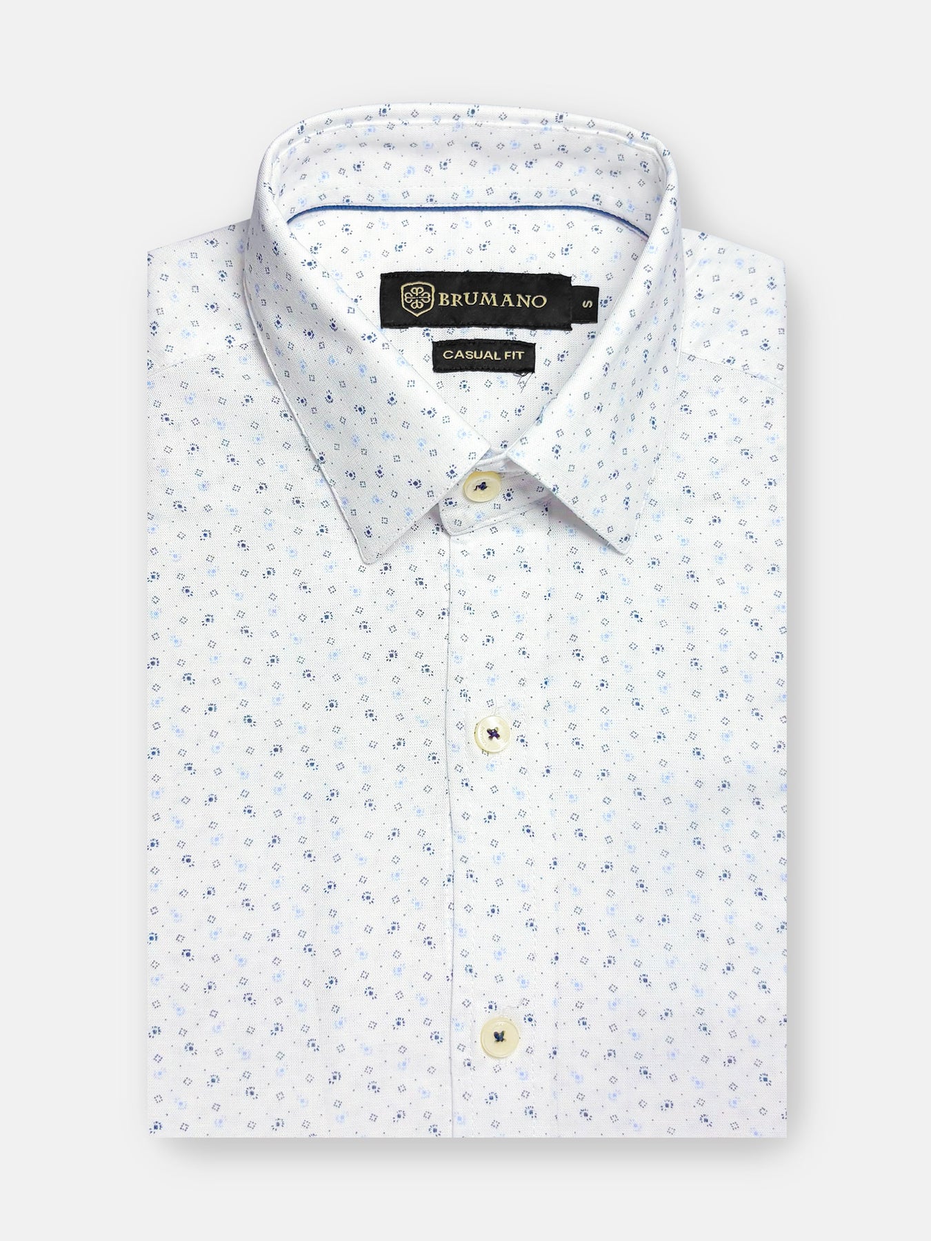Stay cool and stylish in this white & blue printed linen shirt. Made from breathable linen blended fabric, it features a fresh print in soft blue tones on a crisp white base. Perfect for warm-weather days, this shirt offers a relaxed yet refined look for any casual occasion.
