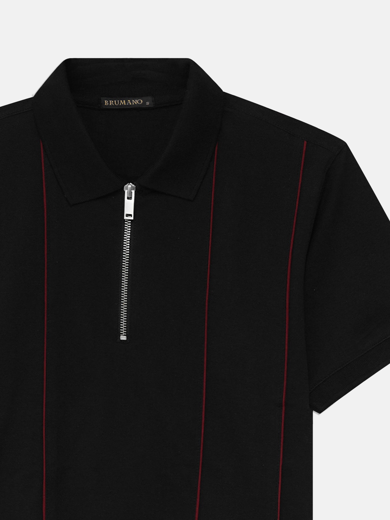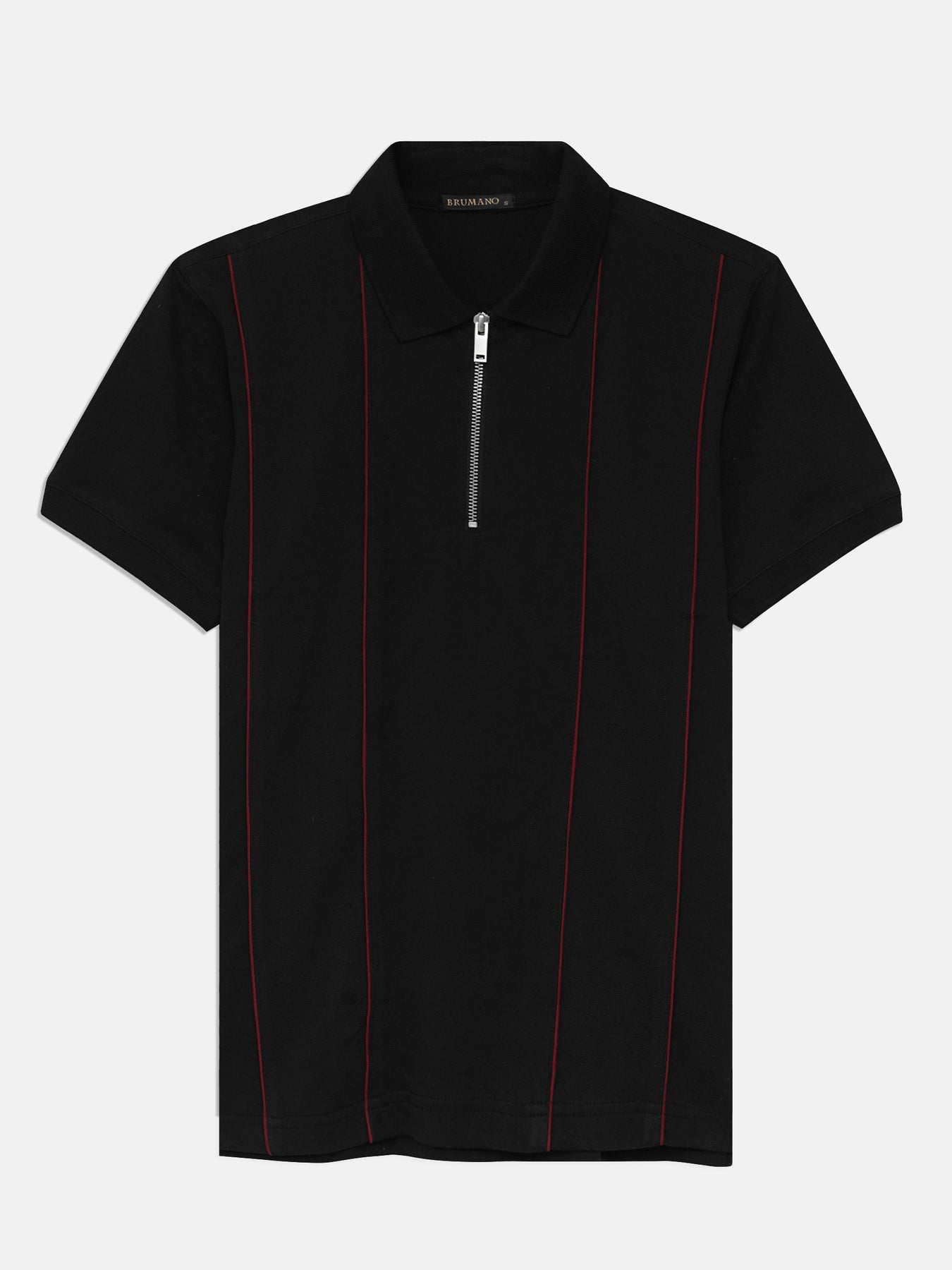 Black Front Striped Zipper Polo