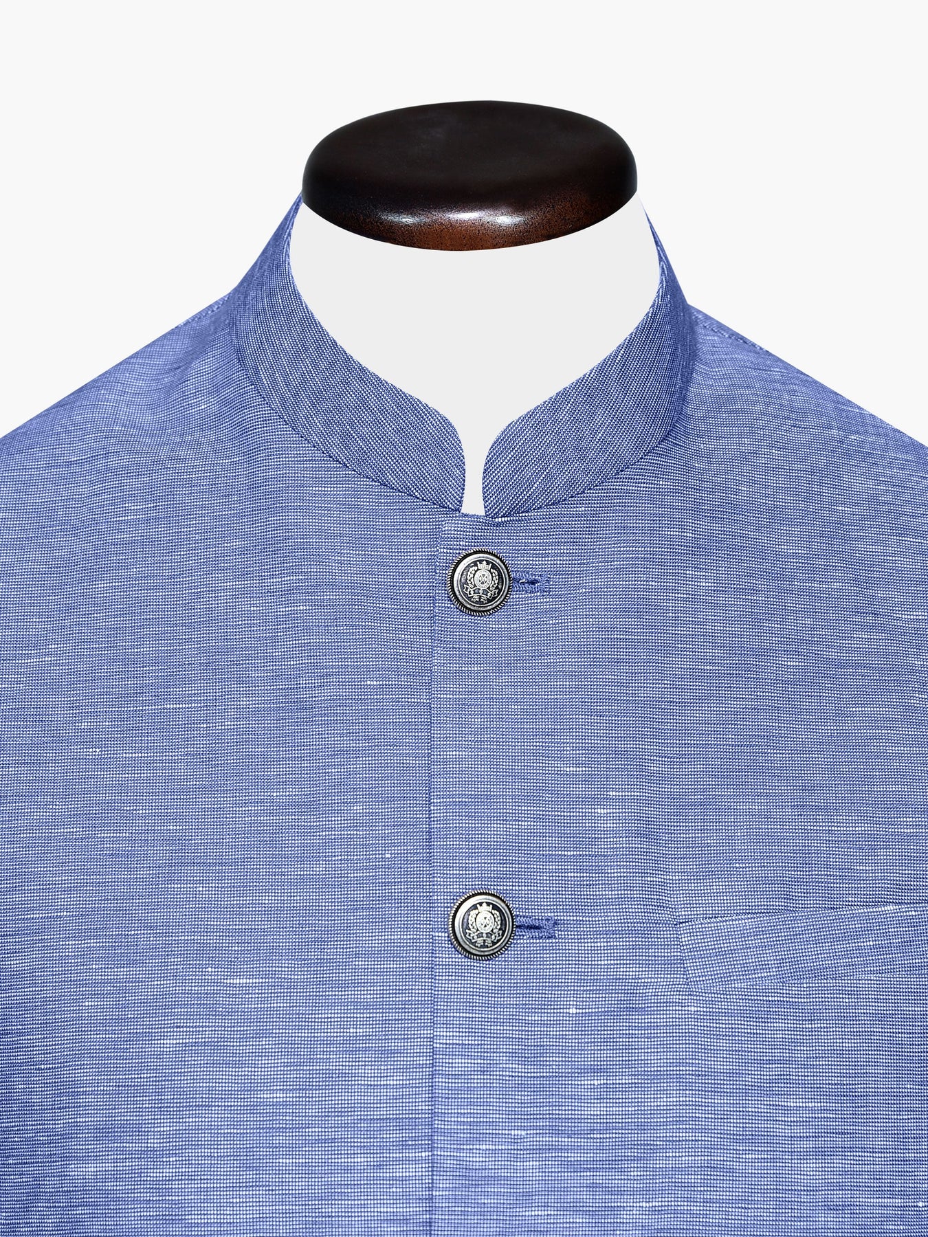 Whether it's a wedding or a business dinner, this finely tailored blue linen structured waistcoat will hit the mark. Featuring front pocket & silver metal buttons